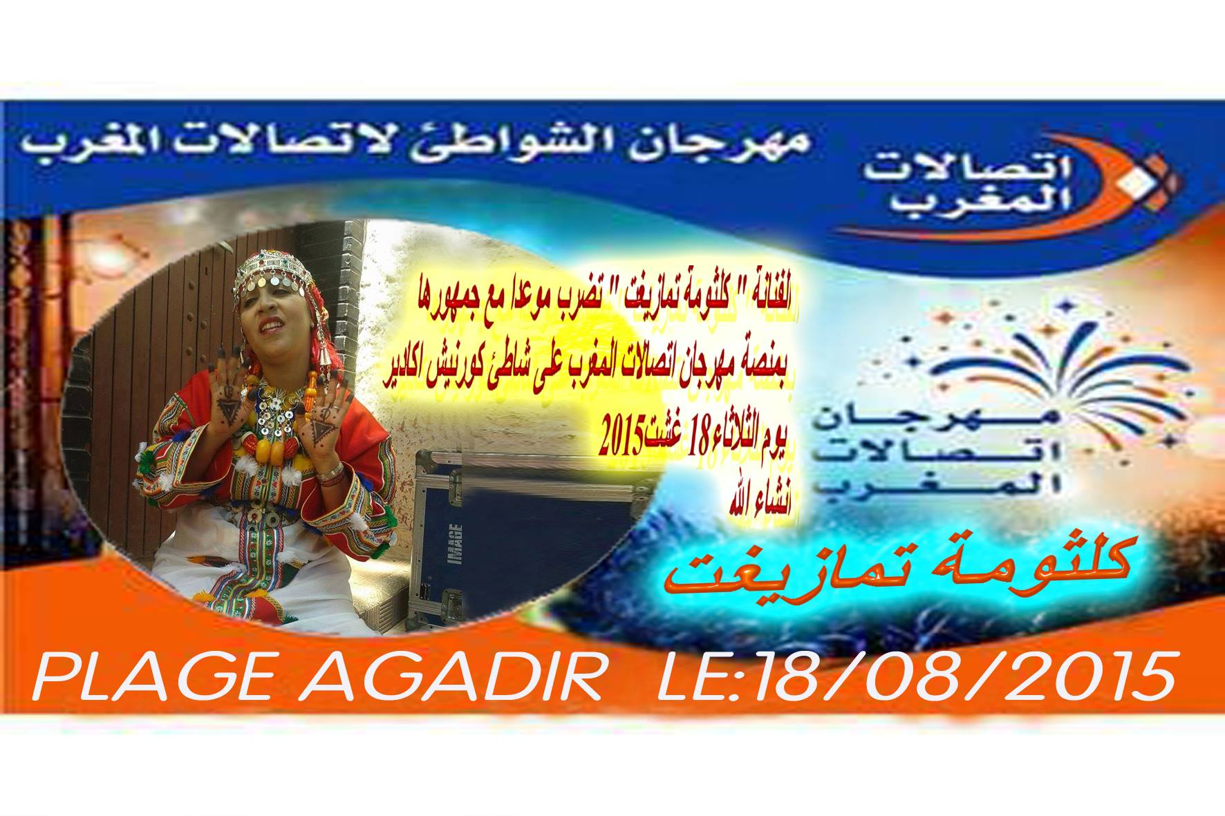 الفنانة ” كلثومة تمازيغت ” مشاركة في مهرجان اتصالات المغرب بشاطئ اكادير