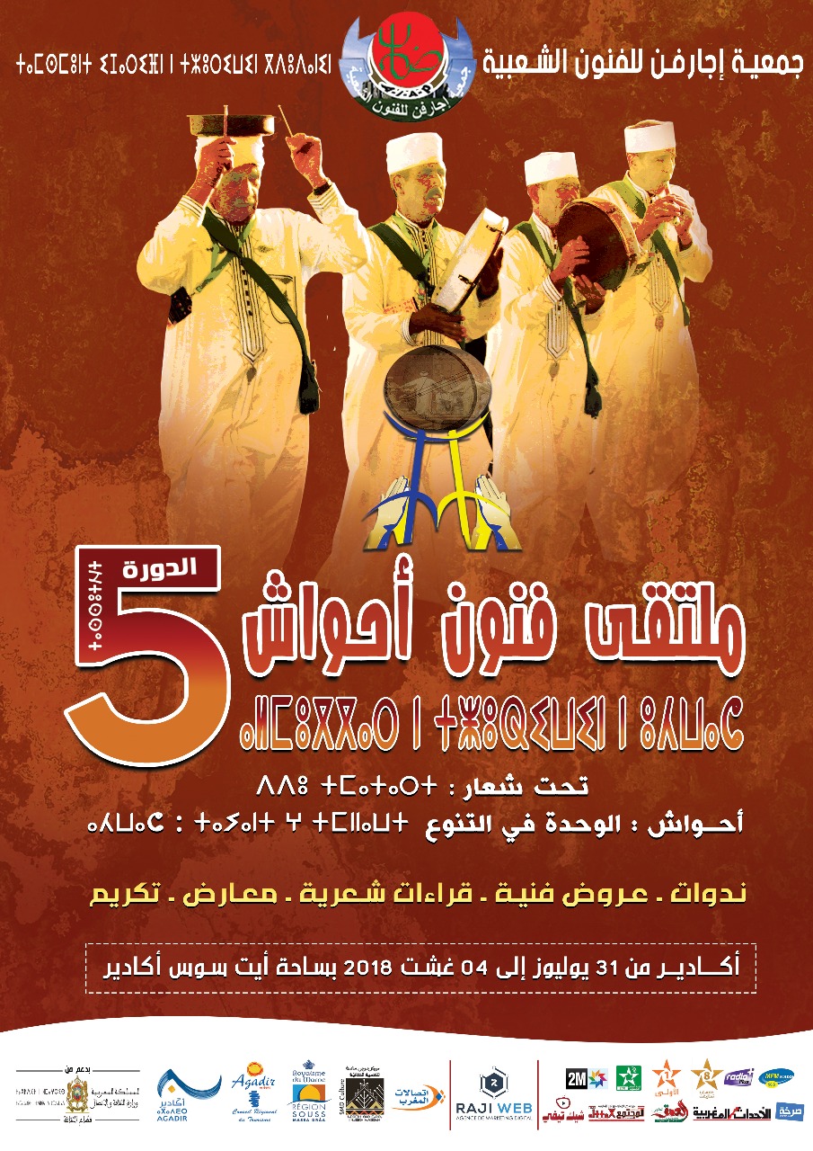 جريا على عادتها مند 5 سنوات، تنظم جمعية إجارفن للفنون الشعبية الدورة الخامسة لملتقى فنون أحواش تحت شعار: ” فنون…