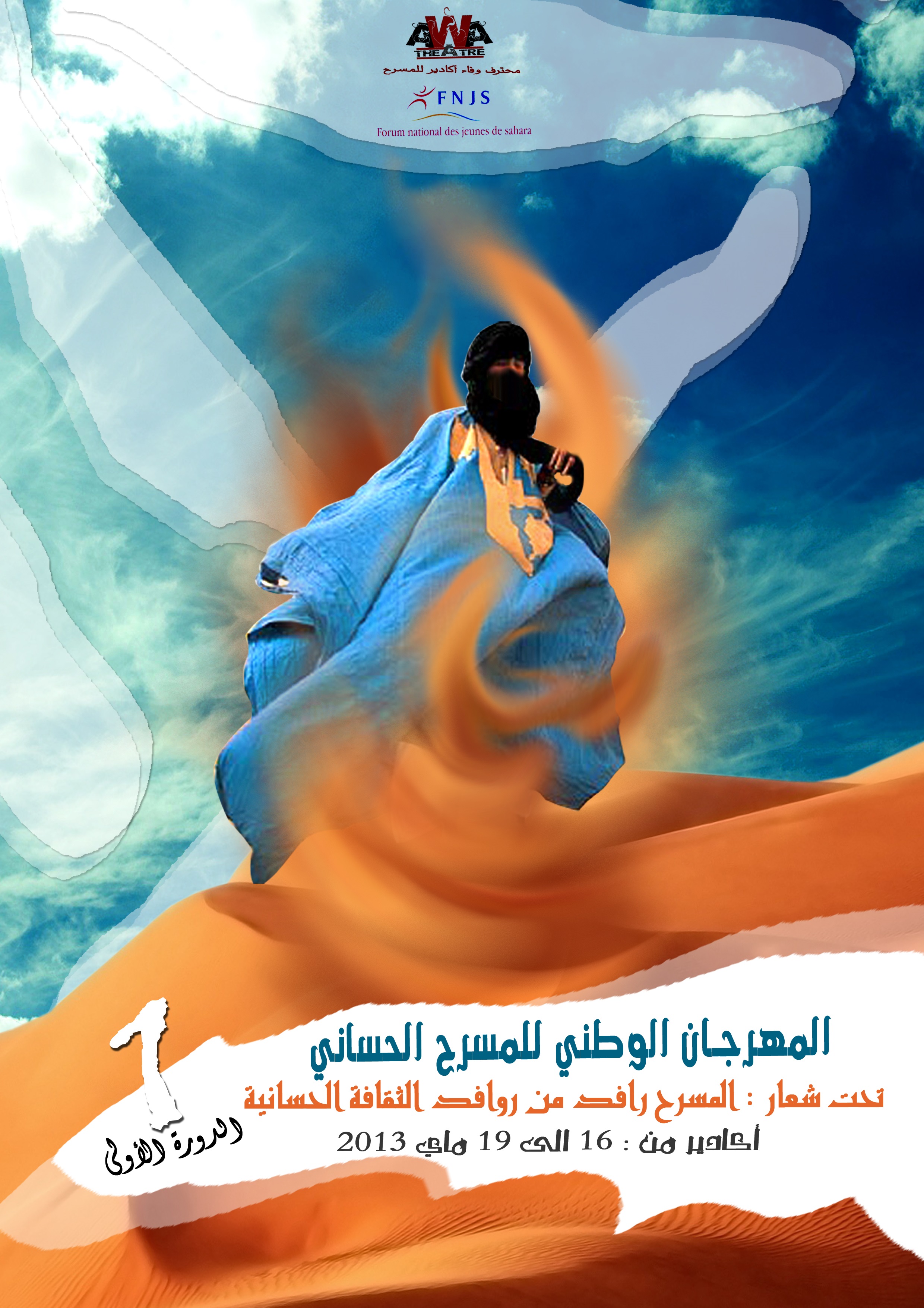 احتفاء باليوم الوطني للمسرح، ينظم محــترف وفــاء أكادير للمسرح Awa théâtre و جمعية المنتدى الوطني لشباب الصـــــحراء “المهرجان الوطني الأول للمسرح الحساني” في دورته الأولى تحت شعار “المسرح رافد من روافد الثقافة الحسانية” وذلك في الفترة ما بين 16 و 19 ماي 2013 بمدينة أكادير.