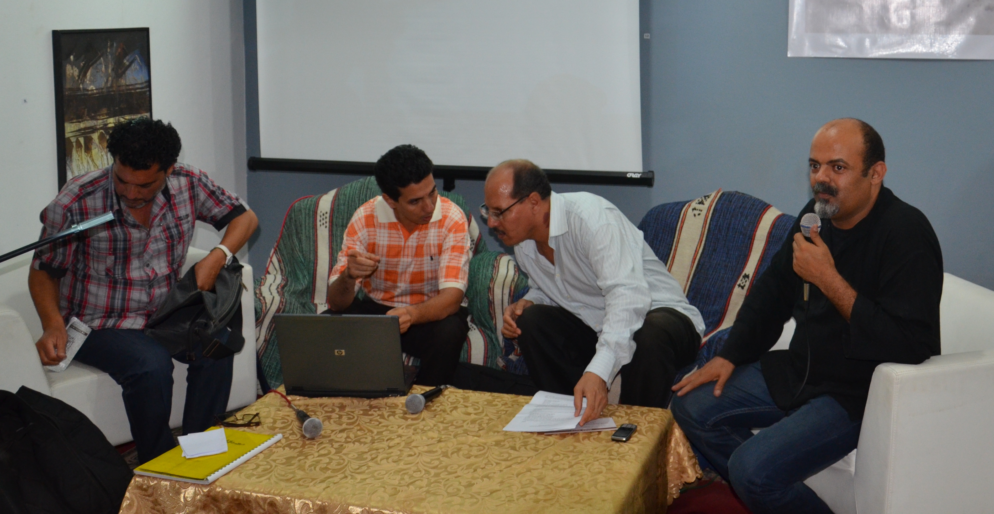 شارك في الندوة الناقد ابراهيم الحَيْسن الذي أطر اللقاء وألقى عرضا حول ملامح التوجه التشكيلي وتجربة الجماعات في المغرب، مقدما فيه قراءة لأهم التصنيفات المنجزة حول الإبداع التشكيلي في المغرب وهي لكل من برنارد سانت إينيان، ميشيل راغون، بيير غوديبير، ألان فلامون، محمد السرغيني وموليم العروسي. وفي تجربة الجماعات استعرض نماذج عالمية كان لها دور بارز في التأسيس للأساليب والمدارس الفنية، كجماعة كوبرا، الفارس الأزرق، الهادر إدج، إل باسو، دوالست..إلى جانب جماعة البعد الواحد في العراق التي تركز اهتمامها على الهوية البصرية، وجماعة 65 التي سعت إلى إعادة الاعتبار التراث الوطني انطلاقا من الأرضية البيداغوجية. وبخصوص التوجهات والميولات، توقف الحيسن عند تجربة الجسد في التشكيل المغربي مستشهدا بعدة نماذج في التصوير والنحت.