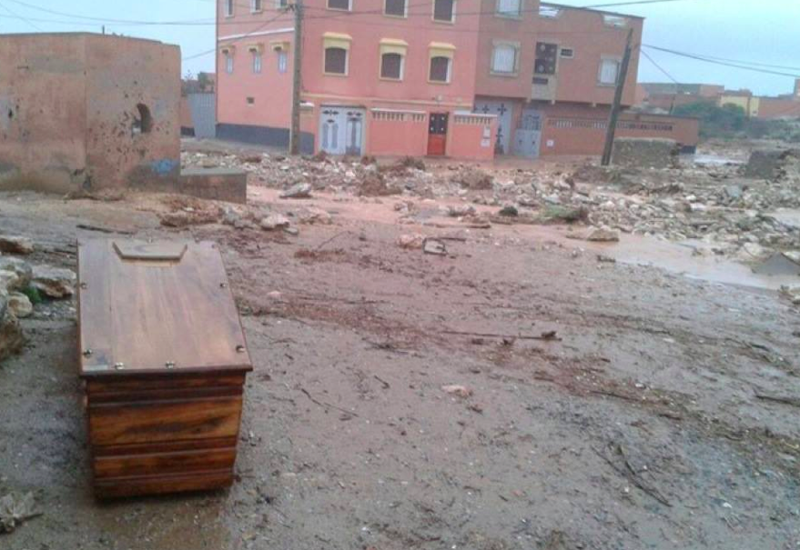 سكان أكلو بتزنيت يصفونها البارحة بليلة الرعب التي هدم فيها 100 بيت كليا او جزئيا والسيول جرفت حتى المقبرة