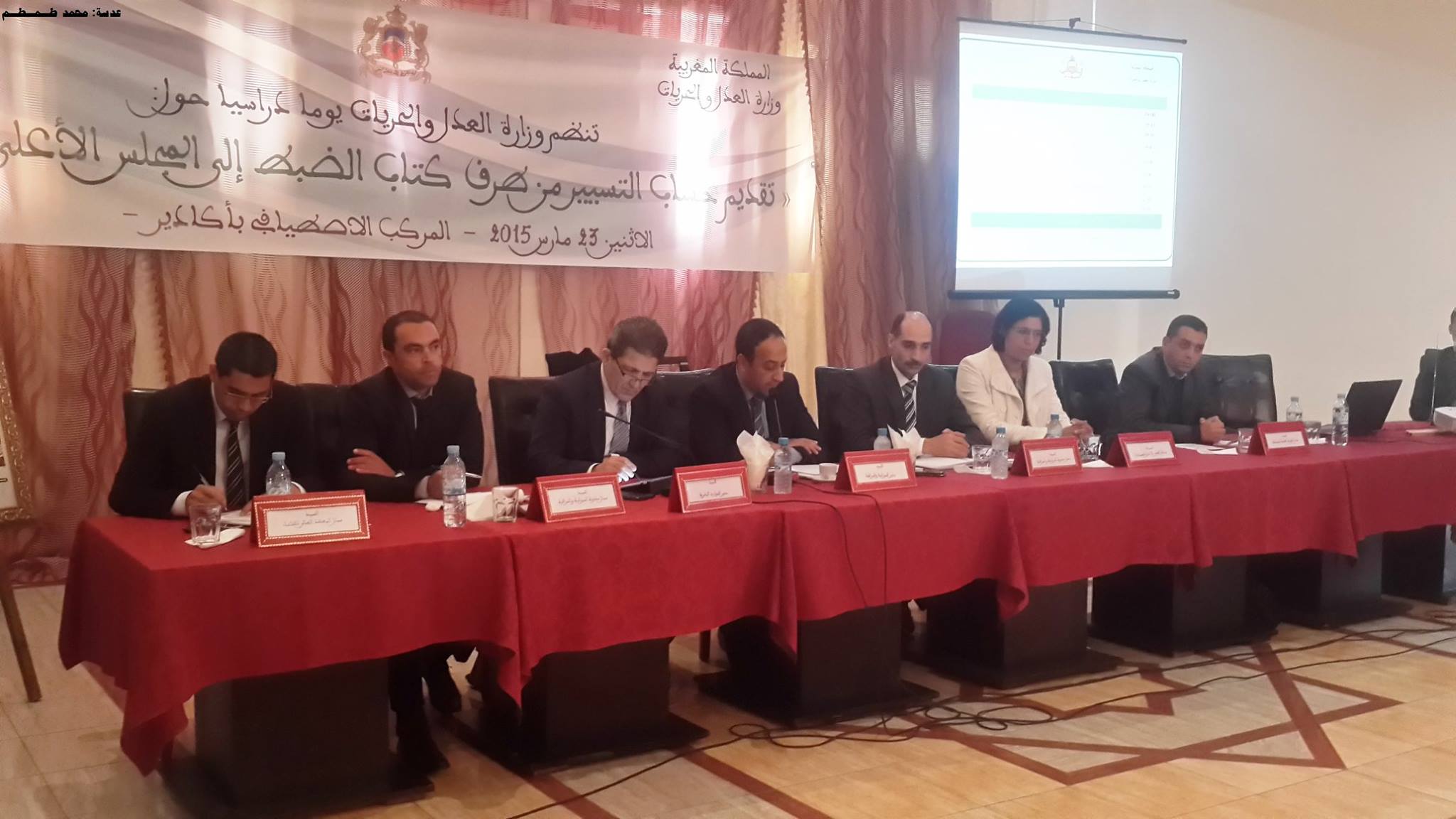 توافدت على مركز الاصطياف التابع لوزارة العدل بمدينة اكاديراطر كتاب الضبط (90 اطار)التابعين لمختلف المحاكم الابتدائية ،والاستئنافية ،والتجارية، والادارية ،ومراكز القضاء المقيم ،يمثلون جهة سوس ماسة درعة ،وجهة كلميم السمارة، وبعض المدن من جهة مراكش تانسيفت الحوز، وذلك يوم الاثنين23 مارس2014 لأجل حضور فعاليات اليوم الدراسي والذي نظمته وزارة العدل والحريات، بتنسيق مع المعهد العالي للقضاء، وبتعاون مع الخزينة العامة للمملكة ،والمجلس الاعلى للحسابات، في موضوع:”تقديم حساب التسييرمن طلرف كتاب الضبط الى المجلس الاعلى للحسابات” والذي عرفت اشغاله تقديم ثلاثةعروض من قبل كل من : الاستاذ: عزيز مجدالي عن مديرية الميزانية والمراقبة في مداخلة تحت عنوان:”كتاب الضبط وتقديم حساب التسيير” ومداخلة ثانية للاستاذ:مولاي حسن رزقي في موضوع:”تجربة الخزينة العامة للمملكة في تقديم حساب التسيير” ومداخلة اخيرة للاستاذة: مونية دنيا في موضوع: الاختصاصات القضائية للمجلس الاعلى للحسابات” .