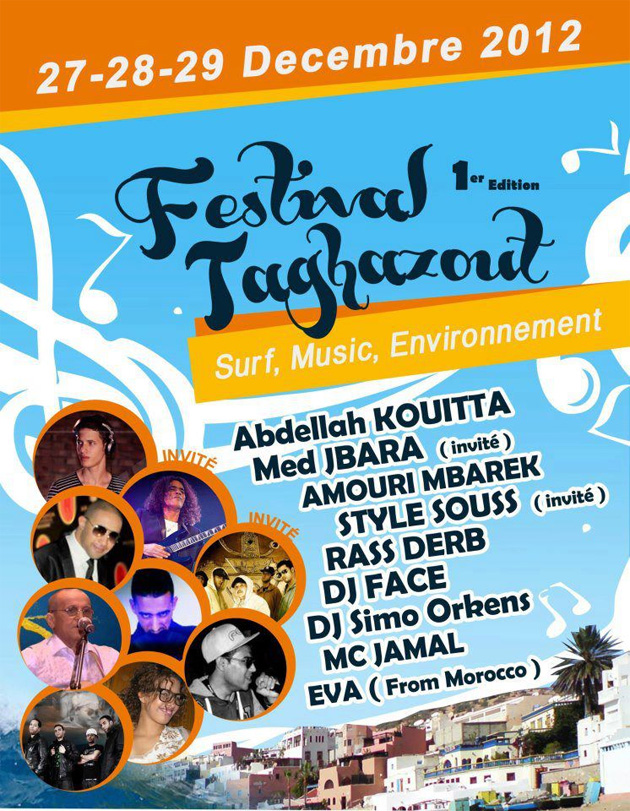 تنظم جمعية إزوران ن تغازوت للتنمية و البيئة الدورة الأولى لمهرجان تغازوت و ذلك أيام 27 , 28 و 29 دجنبر 2012. و تتضمن فقرات المهرجان، ندوة صحفية و حملة نظافة، بالإضافة إلى مسابقة لركوب الأمواج وحفل فني.