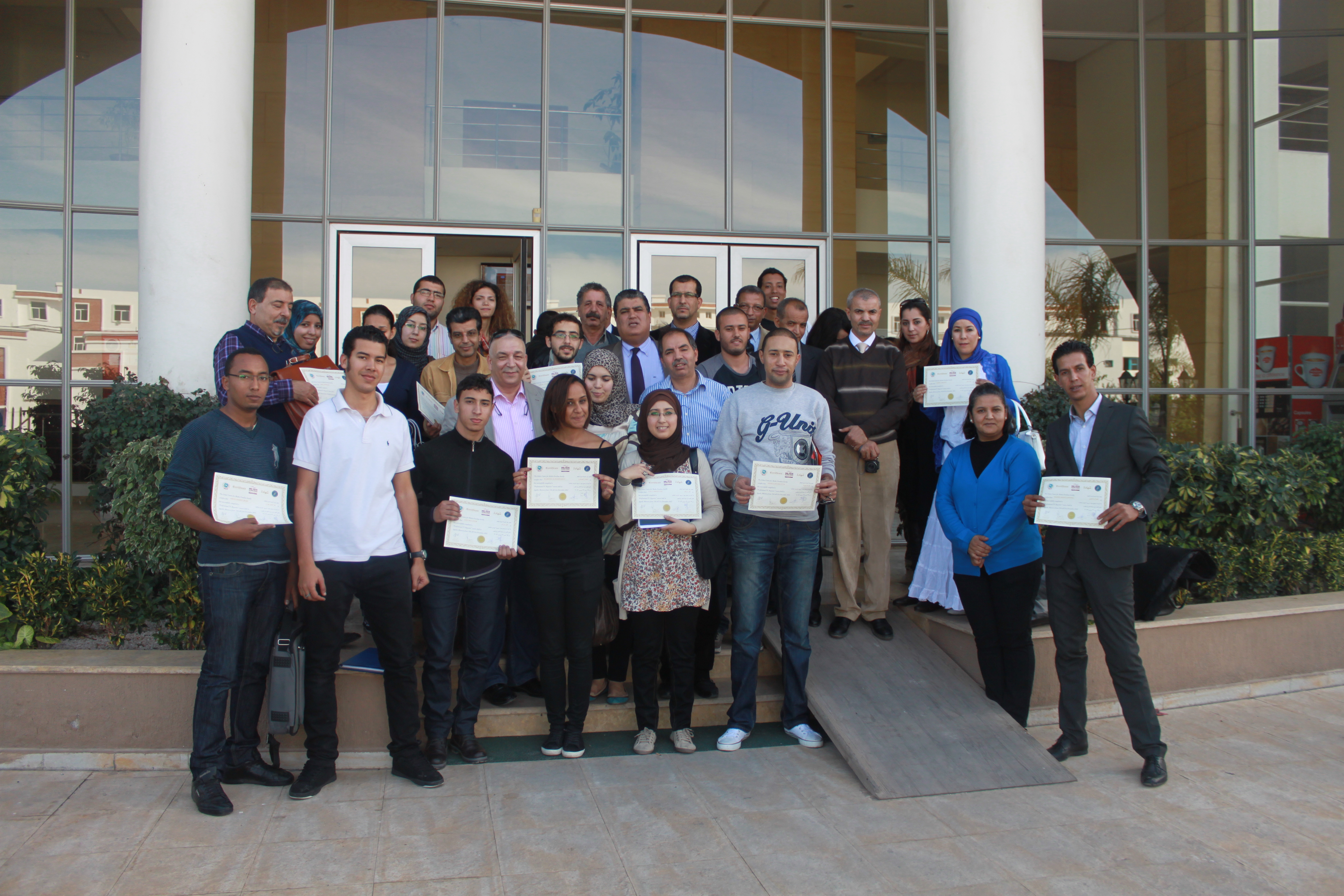عرف مقر رئاسة جامعة إبن زهر صبيحة يوم الخميس 20 دجنبر2012 , حفل تسليم الشهادات للمشاركين في الدورة التكوينية “الصحفي المتكامل” والتي دامت خمسة ايام من تاطير الاستاذ حسن الراشدي الاعلامي و مستشار مدير مركز الدوحة لحرية الاعلام و إستفاد منها الطلبة الباحثين في ماستر مهن و تطبيقات الاعلامMPM , و تمثل هذه الدورة أولى ثمار مذكرة تفاهم وقعتها جامعة ابن زهر ومركز الشروق للديموقراطية والإعلام وحقوق الإنسان وهدفت الى تسليح الطلبة الصحافيين وإكسابهم المهارات اللازمة للعمل الصحافي بكل القواعد والأبجديات التي يحتاجها المراسل في إعداد التقارير و القصة الإخبارية و التقديم و المقابلات الصحفية وفق المعايير المعتمدة في كبريات المحطات الإخبارية الدولية.