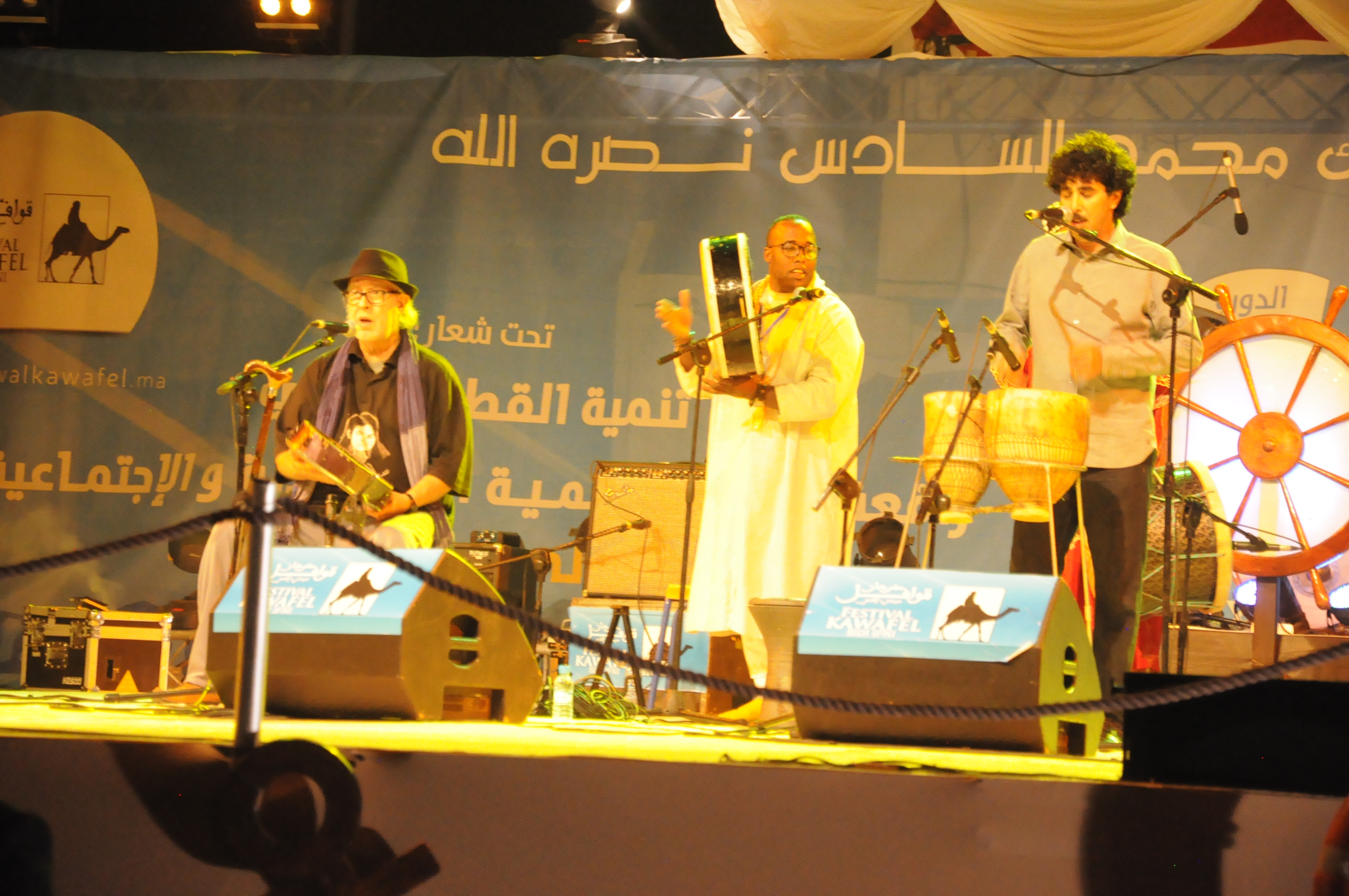 استطاعت مجموعة ” ناس الغيوان ” ان تلهب سماء الفضاء المخصص لمنصة مهرجان قوافل ليلة السبت 25 يوليوز 2015 في دورته السادسة بمدينة سيدي إفني المنظم من قبل منتدى إفني أيت باعمران والذي اختير له شعار ” تنمية القطاع البحري رافعة اساسية للتنمية الاقتصادية والاجتماعية ” بحيث ادوا أغاني وإيقاعات غيوانية جذبت إليها جمهورا غفيرا قدر بأزيد من 20 ألف متفرج ومتفرجة، حيث بقي الكل مرابضا بعين المكان إلى منتصف الليل للإستمتاع بليلة غيوانية بكل ما تحمله طقوسها من غناء وجذبة ورقص ذي طابع روحاني. لكن المثيرفي هذه السهرة المبرمجة لهذا المهرجان الذي حقق نجاحا كبيرا بمنطقة أيت باعمران، هو أن الجمهورلم يتوان لحظة وطيلة صعود الغيوان على الخشبة في ترديد الأغاني الخالدة والتفاعل مع الإيقاع المتميز، وخاصة شابات أيت باعمران اللواتي غنين كثيرا بحب وعشق مع المجموعة ورقصن بطريقتهن الإستثنائية مع أشهر أغاني هذه المجموعة الرائدة.