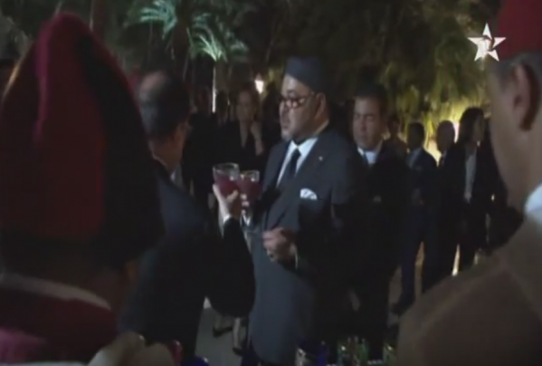 سحب الملك محمد السادس كوب العصير حينما حاول رئيس الجمهورية الفرنسية فرانسوا هولاند قرع كأسه، على غرار تقليد الفرنسيين في الاحتفاء بلحظات فرح، تقرع خلاله الكؤوس.