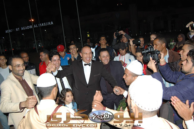 اكادير : استقبال رائع للحكم البطل طارق بنرادي بمطار المسيرة