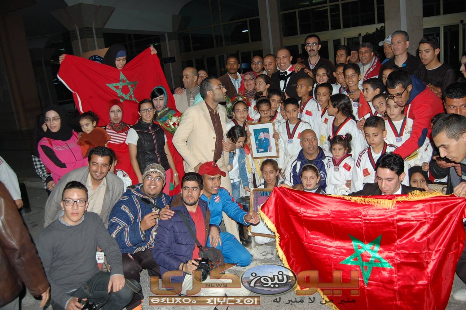 خص محبو الحكم المغربي طارق بنرادي، وعائلته، البطل المغربي باستقبال حافل، في مطار المسيرة الدولي – أيت ملول ، ليلة أمس، بعد عودته إلى أرض الوطن متوجا بجائزة أحسن حكم عالمي دولي لسنة 2015، وذلك خلال الحفل التكريمي السنوي الذي أقامه الإتحاد الدولي للعبة، بالعاصمة المكسيكية مكسيكو يوم الثلاثاء 08 دجنبر 2015.