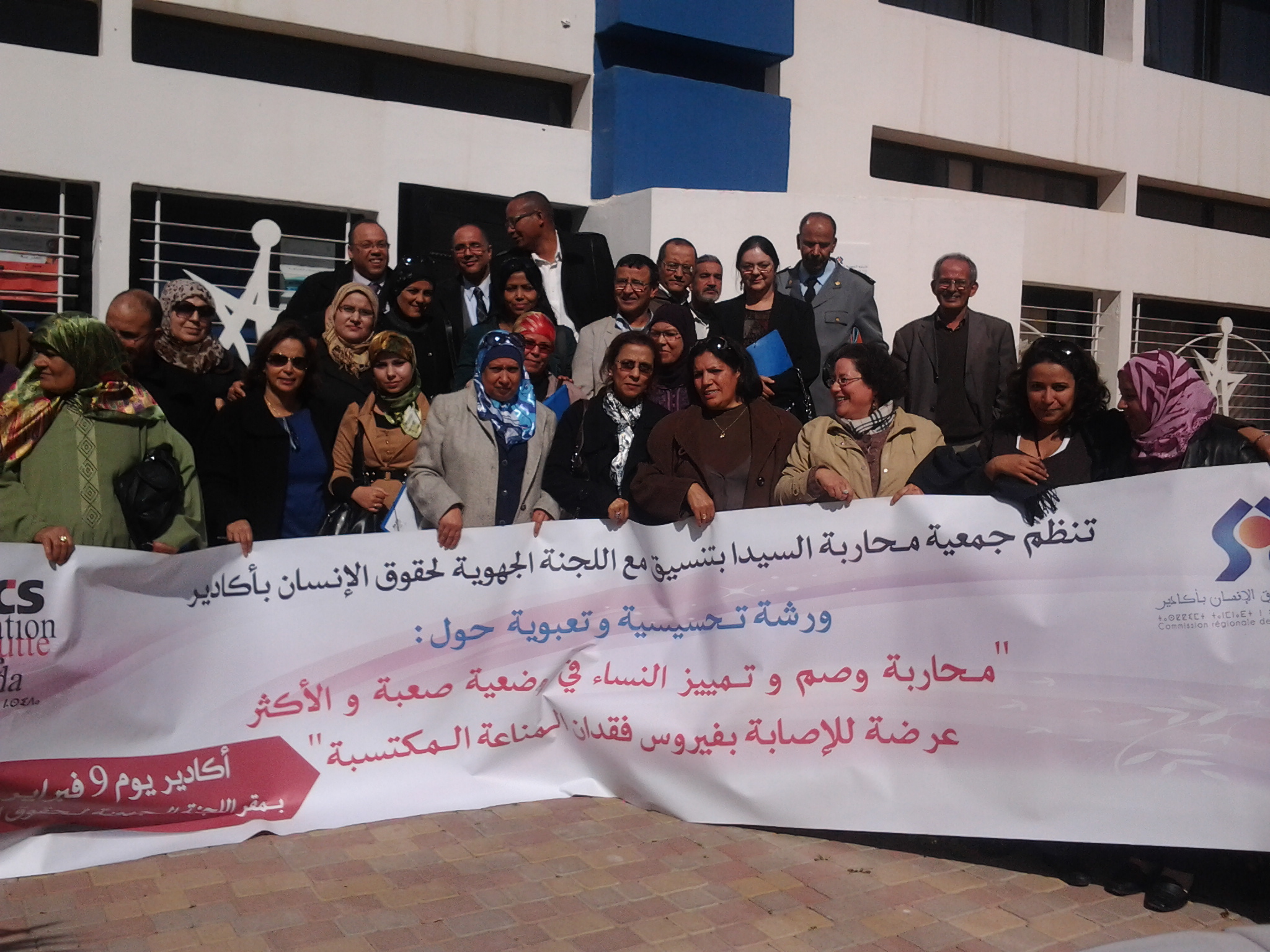 نظمت اللجنة الجهوية لحقوق الإنسان بأكادير،بتنسيق مع جمعية محاربة السيدا بالمغرب ورشة تحسيسية وتعبوية من أجل الحرص على احترام حقوق الأشخاص المتعايشين مع حاملي فيروس السيدا،وحقوق الفئات الأكثرعرضة بفقدان المناعة المكتسب ،ومحاربة وصم وتميزالنساء في وضعية صعبة.