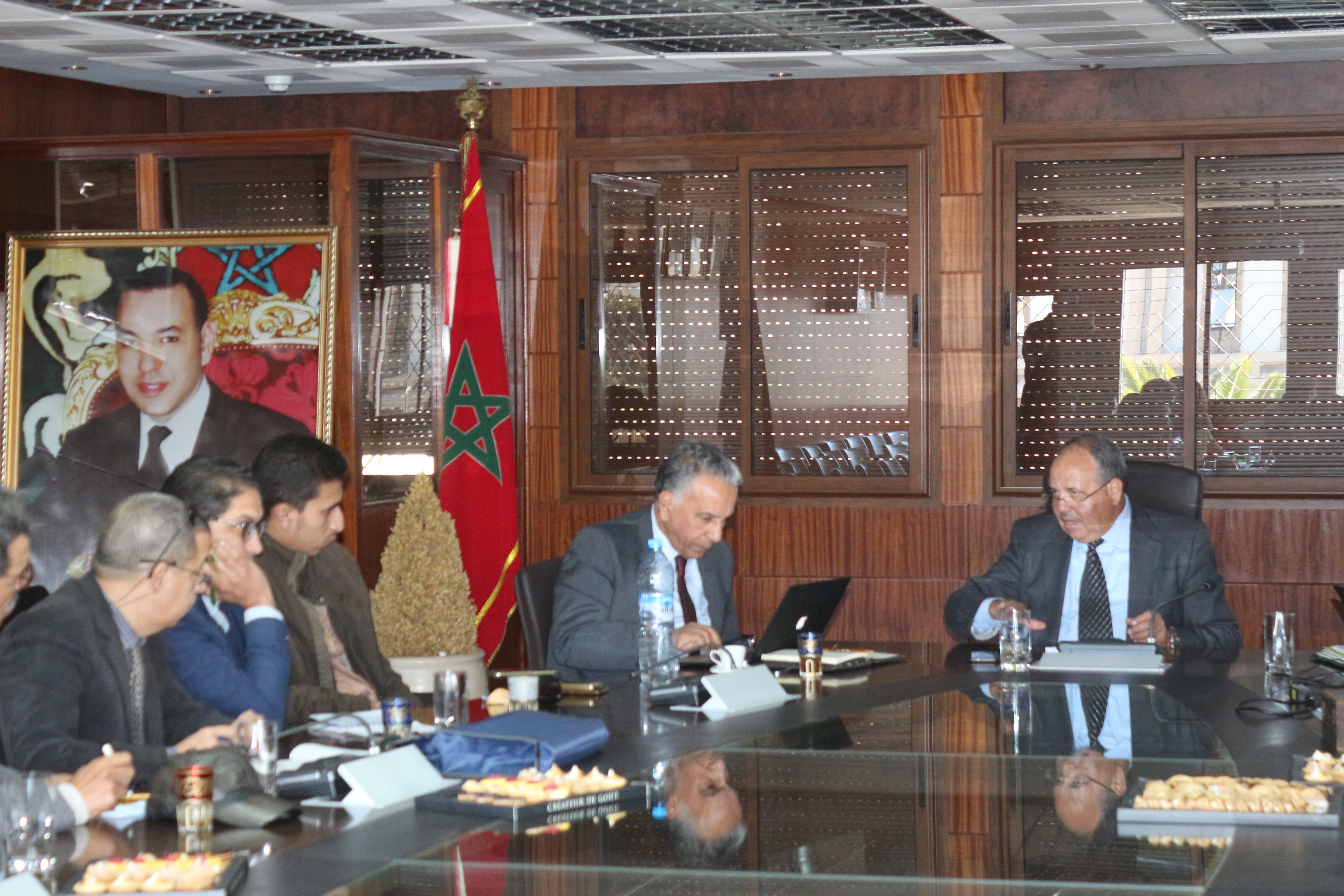 وفي هذا الإطار، قدم عرض شامل حول مشروع تحلية مياه البحر لتلبية احتياجات السقي وإمدادات مياه الشرب، لمواجهة تحديات التدبير المائي في المنطقة، والحفاظ على النشاط الفلاحيا لمزدهر والاستثمارات ذات الصلة، حيث أن تزايد الضغط على الموارد المائية التقليدية سواء منها السطحية أو الجوفية يشكل تحدي حقيقي أمام التنمية المستدامة في المنطقة. ولمواجهة هذا التحدي قررت كل من وزارة الفلاحة والصيد البحري والتنمية القروية والمياه والغابات والمكتب الوطني للكهرباء والماء الصالح للشرب تجميع جهودها في إطار المشروع الكبير لتحلية مياه البحر لتلبية احتياجات الري ولتوفير مياه الشرب في المنطقة بطاقة إنتاجية نهائية تبلغ 400 ألف متر مكعب في اليوم.