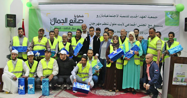 استطاعت جمعية العهد الجديد للتنمية الاجتماعية ، إخراج النسخة الثانية من مهرجان تكريم عمال النظافة تحت شعار “شكرا يا صانع الجمال ” بالقطب الجامعي بمدينة ايت ملول مساء أمس الأحد 6 ماي 2018 ، توج باهداء عمرتين لصانعي جمال يعملون بتراب جماعة ايت ملول إلى جانب فقرات اخرى متنوعة .