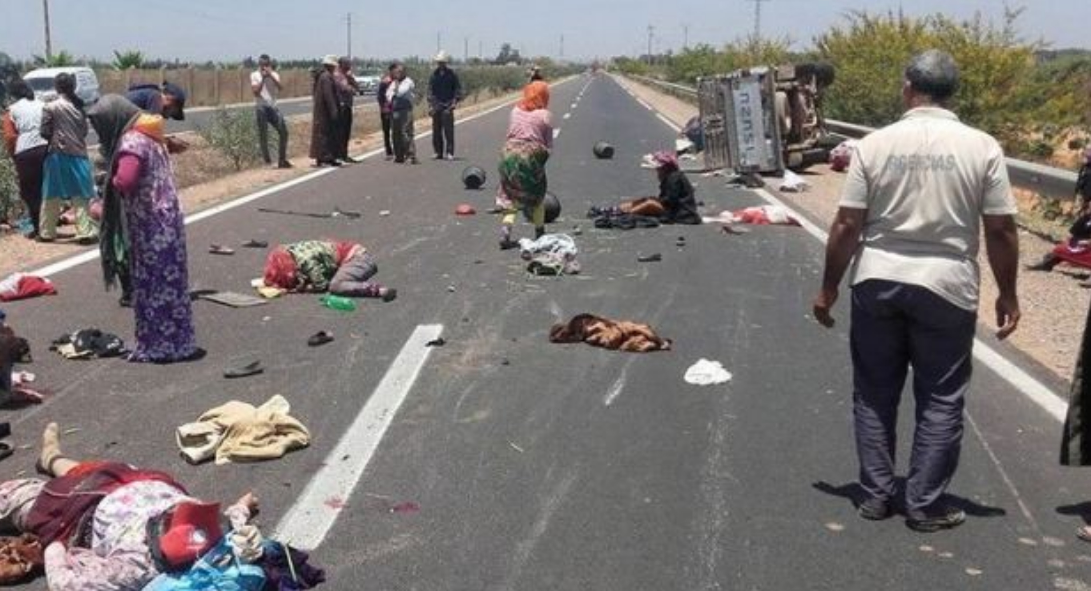عاااجل: مصرع شخص واصابة17آخرين في حادثة سيرة اثر انقلاب سيارة لنقل العمال الزراعيين باشتوكة