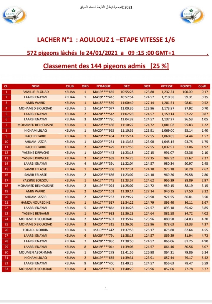 حمامة أيت وكمار لمربيها ” الواد ابراهيم ” تفوز بالجائزة الكبرى لسباق اولوز 120 كلم للحمام الزاجل