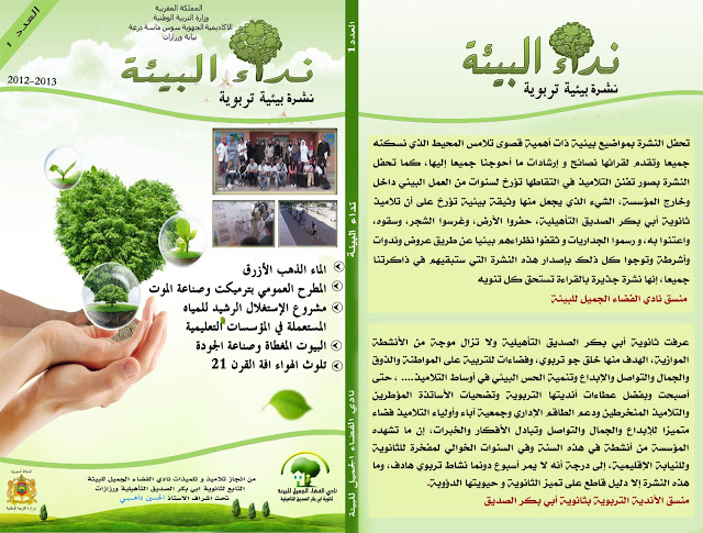 وبالمناسبة اصدر نادي الفضاء الجميل للبيئة لثانوية أبي بكر الصديق التأهيلية بجماعة ترميكت نيابة ورزازات العدد الأول من مجلته الورقية تحت اسم “نداء البيئة”، مجلة ساهم في إعدادها تلاميذ نادي البيئة بالثانوية تحت إشراف الأستاذ الحسين الذهبي .