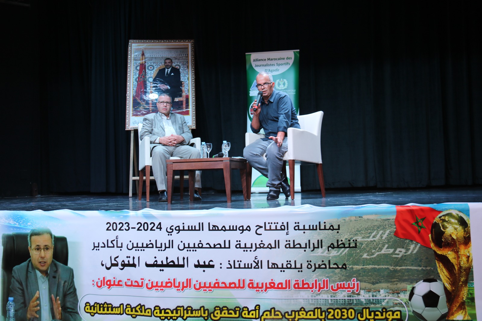 أوضح عبد اللطيف المتوكل ،رئيس الرابطة المغربية للصحافيين الرياضيين ،أن تنظيم المغرب لكأس العالم 2030 بمعية إسبانيا والبرتغال ،هو حلم الذي تشبث به مند سنة 1988، ،باعتبار الرياضة رافعة للتنمية وقاطرة لتحقيق التنمية على مجموعة من المستويات الرياضية ،الاقتصادية ،الاجتماعية و التنموية .مستطردا في المحاضرة التي نظمتها الرابطة المغربية للصحافيين الرياضيين بأكادير يوم الجمعة 20 أكتوبر الجاري ،أن حدث اليوم أسعد الكثير، حيث سيحقق هذا الحلم بمواصفات استثنائية ،لكون المغرب في المحطات السابقة قدم طلب ترشيحه الانفرادي لست مرات .