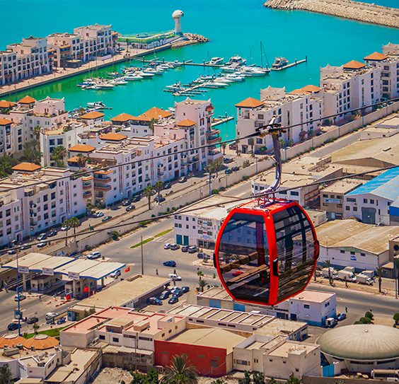 أكادير: رحلة النهضة وتحولات مبهرة – اكتشف مدينة الجنوب الزاهية من على متن التليفيريك وتجول في عالم جديد تحت رؤية عبقرية