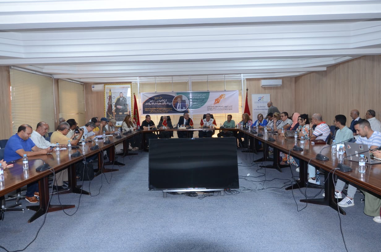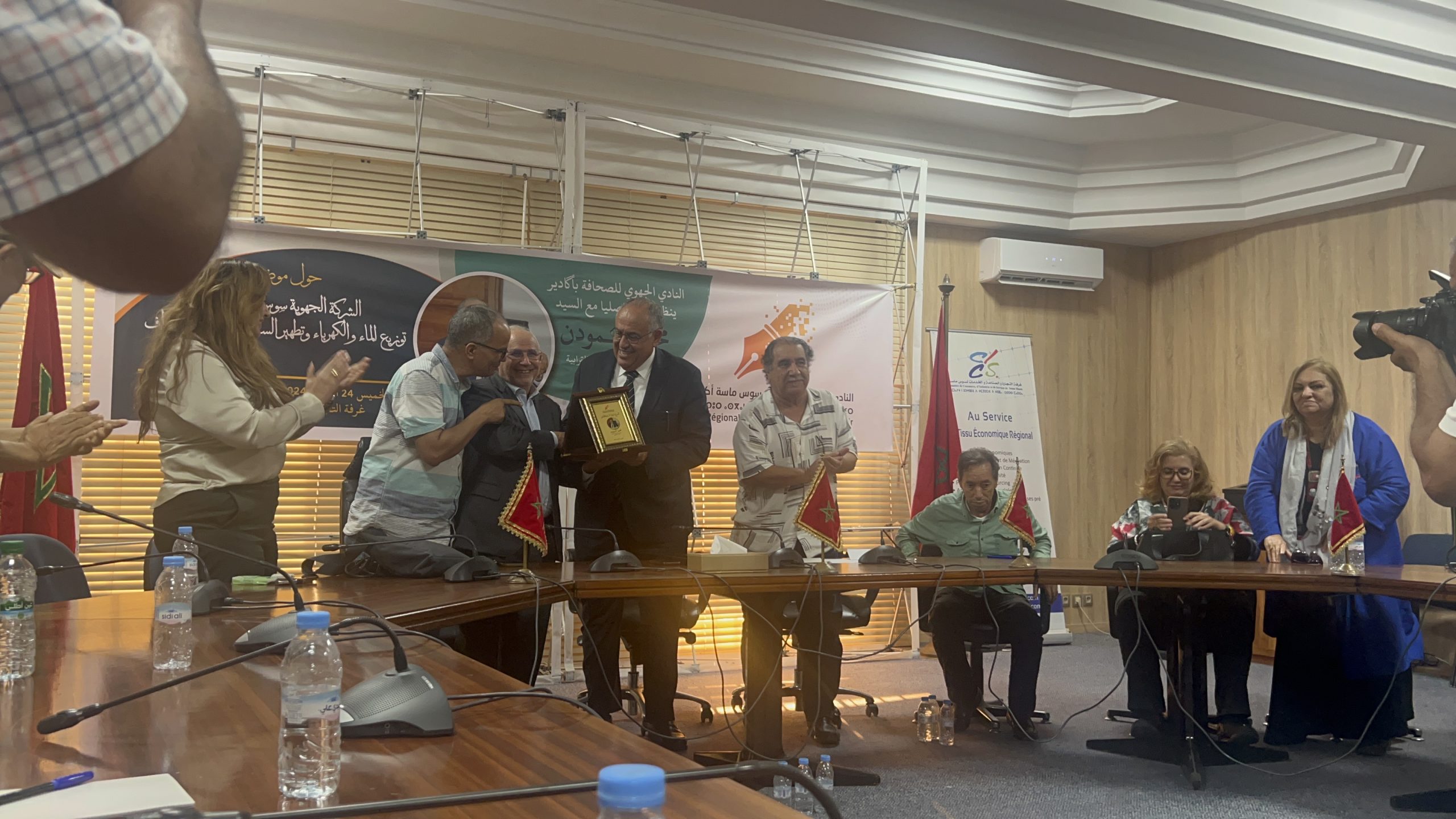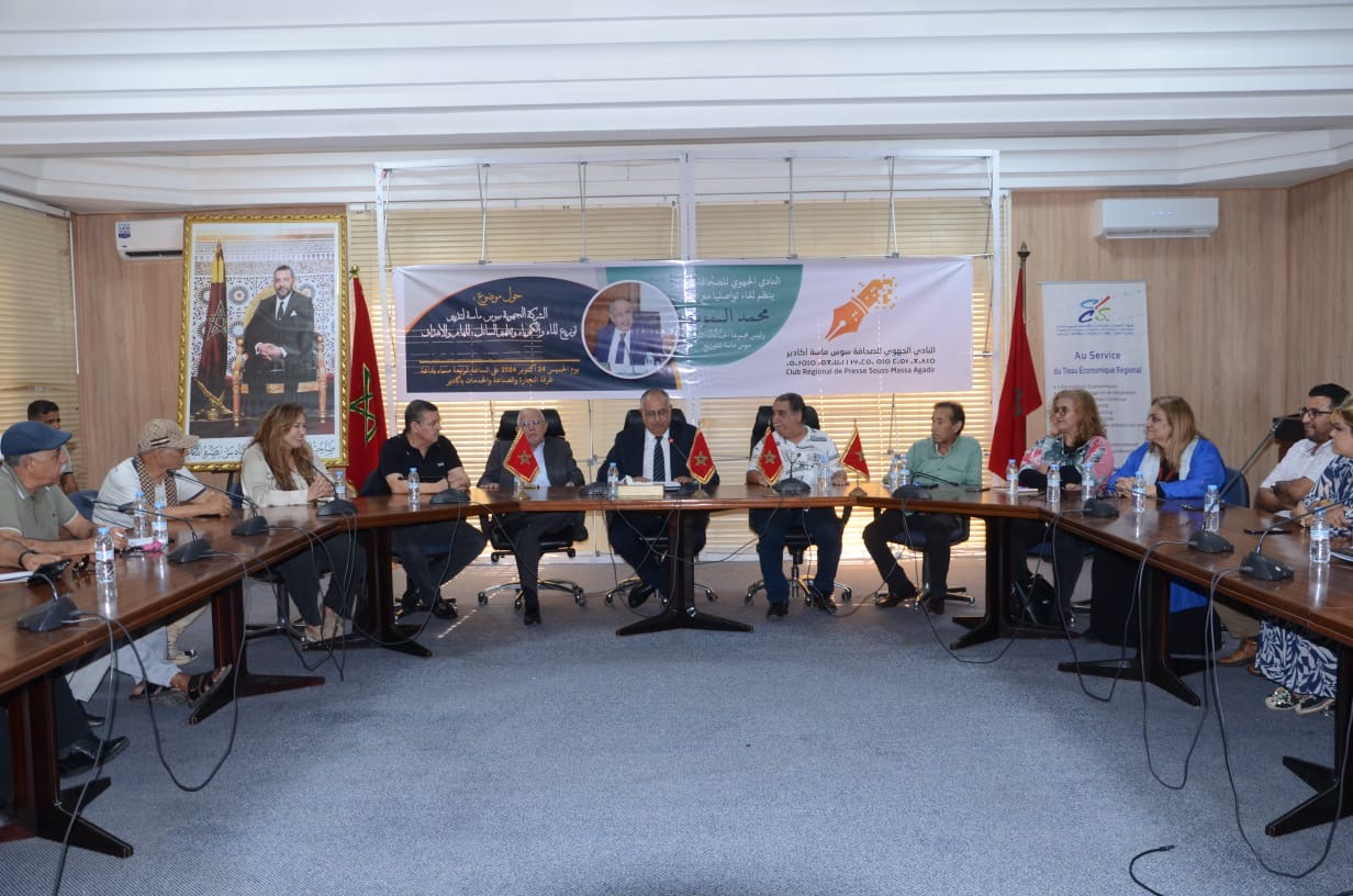 نظم النادي الجهوي للصحافة أكادير سوس-ماسة زوال الخميس 24اكتوبر الحاري بقاعة الندوات بغرفة التجارة والصناعة والخدمات لأكادير لقاءً تواصلياً أدار جلسته الأستاذ الزميل العمالكي، واستضاف خلاله السيد محمد المودن، رئيس مجموعة الجماعات الترابية سوس ماسة للتوزيع. وتمحور حول موضوع الشركة الجهوية سوس ماسة لتدبير وتوزيع الماء والكهرباء وتطهير السائل، حيث قام السيد المودن بتوضيح المهام والأهداف الرئيسية لهذه الشركة التي بدأت حديثاً في تولي مسؤولية تدبير هذه الخدمات الحيوية.