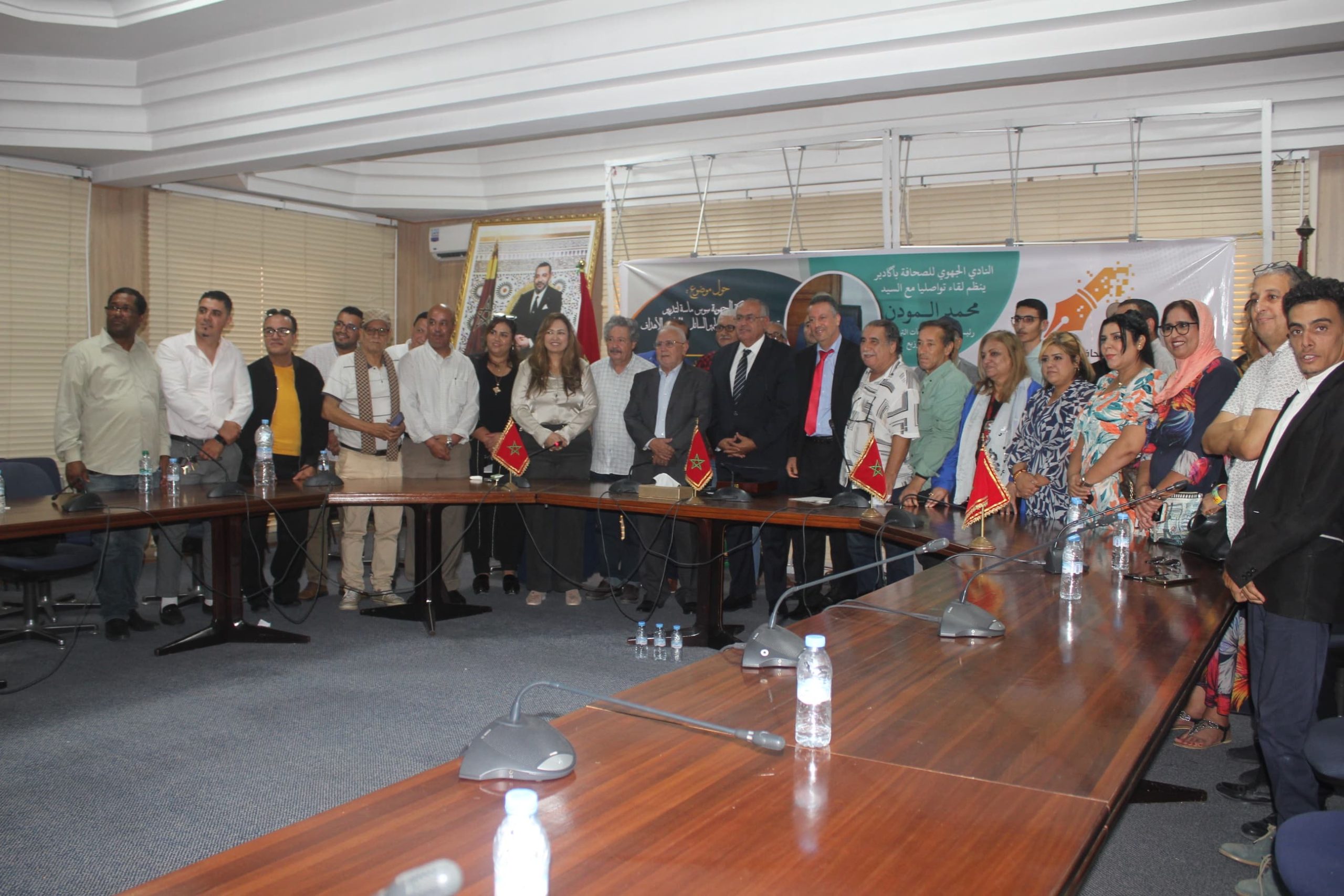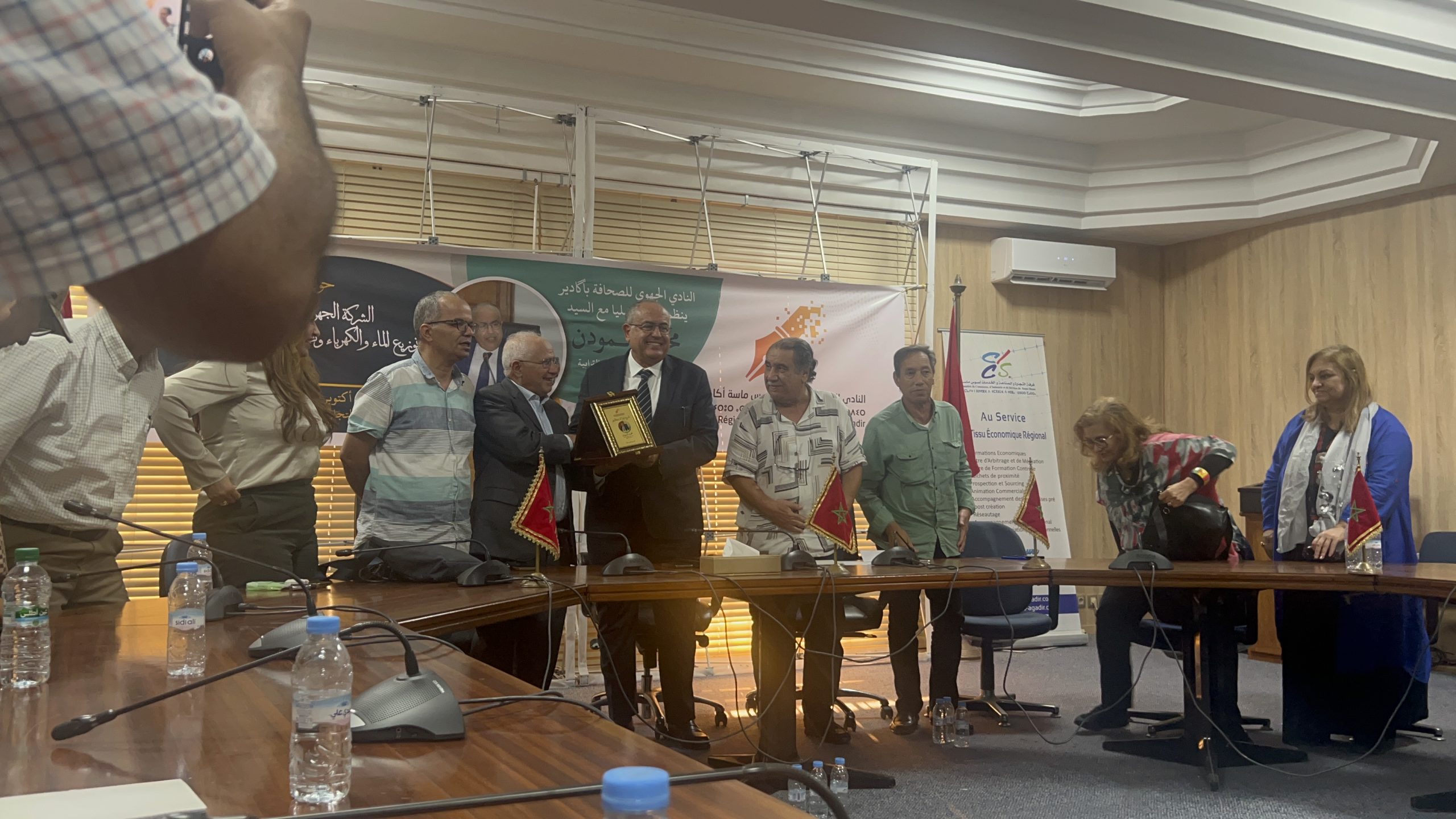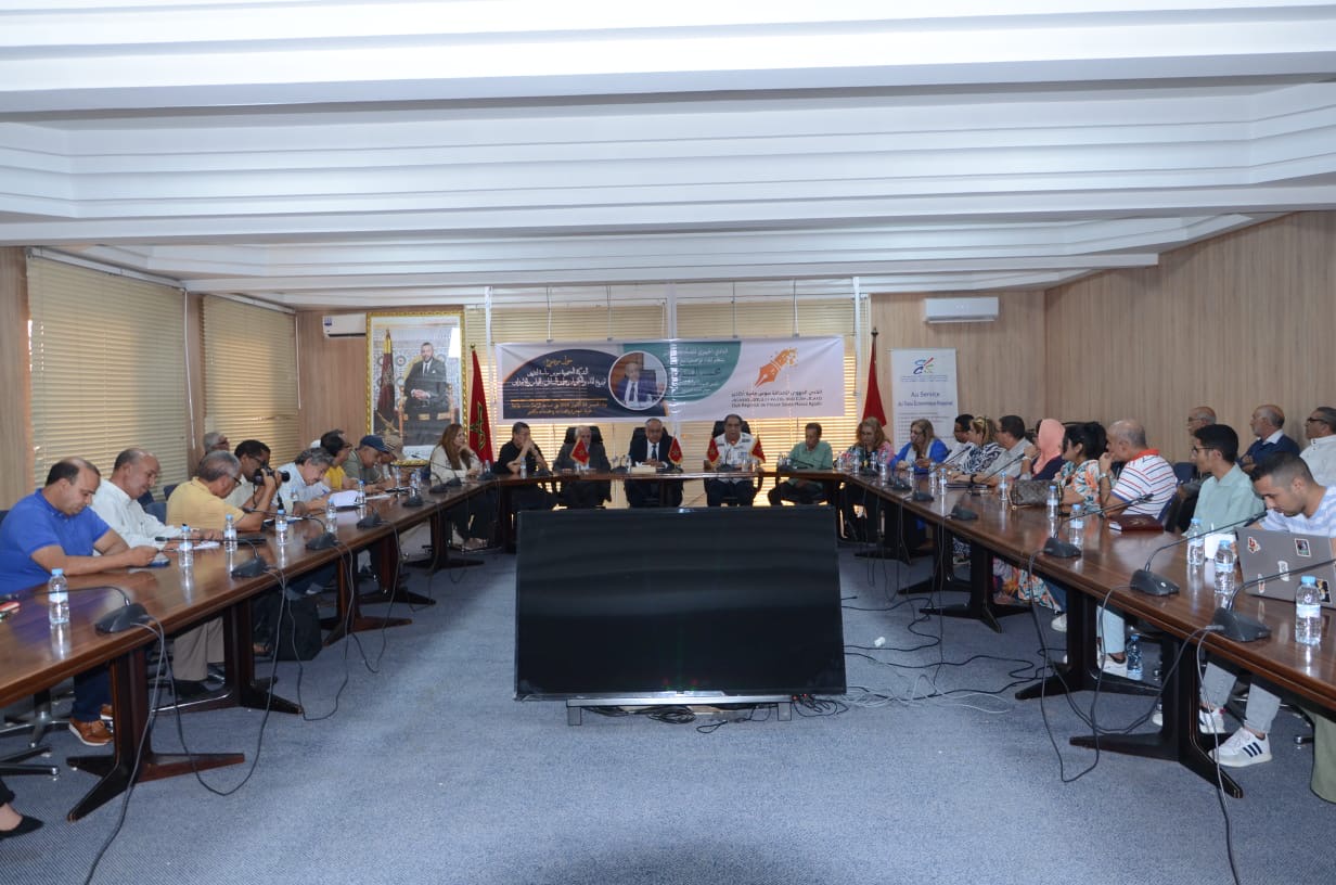 نظم النادي الجهوي للصحافة أكادير سوس-ماسة زوال الخميس 24اكتوبر الحاري بقاعة الندوات بغرفة التجارة والصناعة والخدمات لأكادير لقاءً تواصلياً أدار جلسته الأستاذ الزميل العمالكي، واستضاف خلاله السيد محمد المودن، رئيس مجموعة الجماعات الترابية سوس ماسة للتوزيع. وتمحور حول موضوع الشركة الجهوية سوس ماسة لتدبير وتوزيع الماء والكهرباء وتطهير السائل، حيث قام السيد المودن بتوضيح المهام والأهداف الرئيسية لهذه الشركة التي بدأت حديثاً في تولي مسؤولية تدبير هذه الخدمات الحيوية.