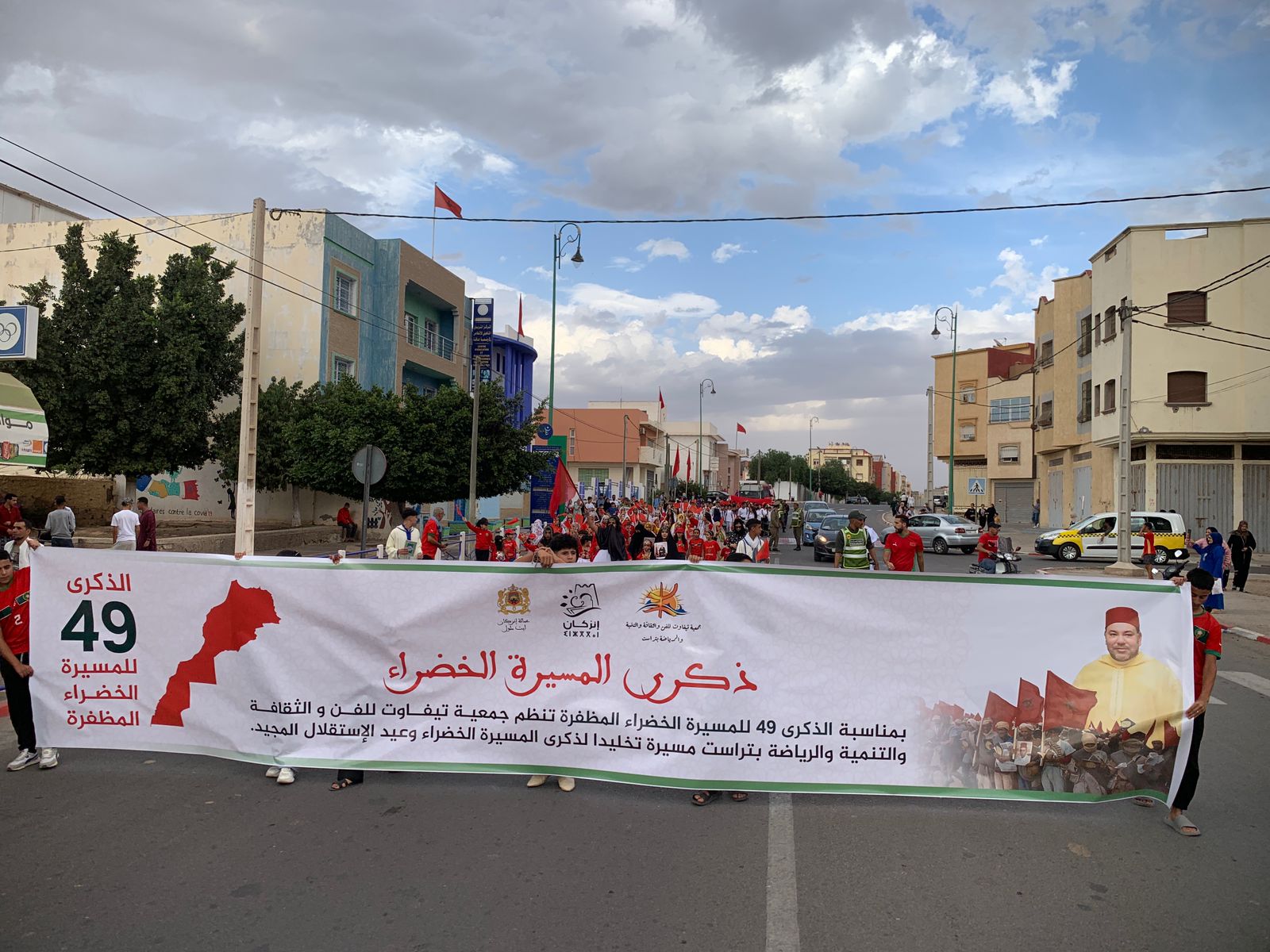 بمناسبة عيد المسيرة الخضراء المظفرة وعيد الاستقلال المجيد، شهدت مدينة تراست حدثًا وطنيًا مميزًا نظمته جمعية تيفاوت للفن والثقافة والتنمية. الحدث انطلق بمسيرة شعبية من أمام دار المبادرة بالرمل على الساعة الثالثة زوالًا، حيث اجتمع سكان المنطقة من مختلف الأعمار للمشاركة في هذه المسيرة التي توحدت فيها القلوب تحت راية الوطن.