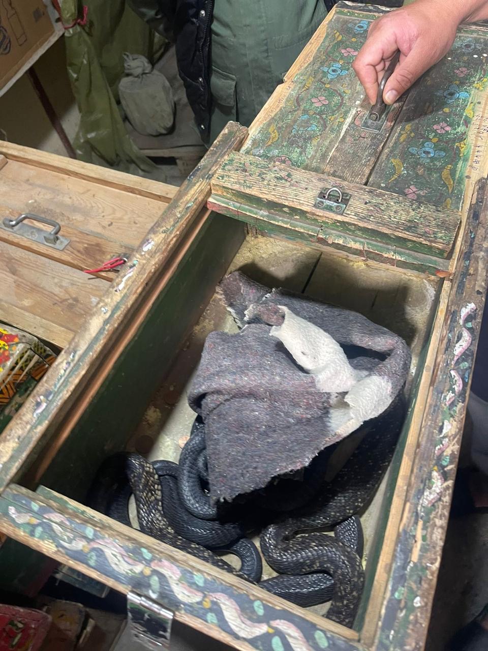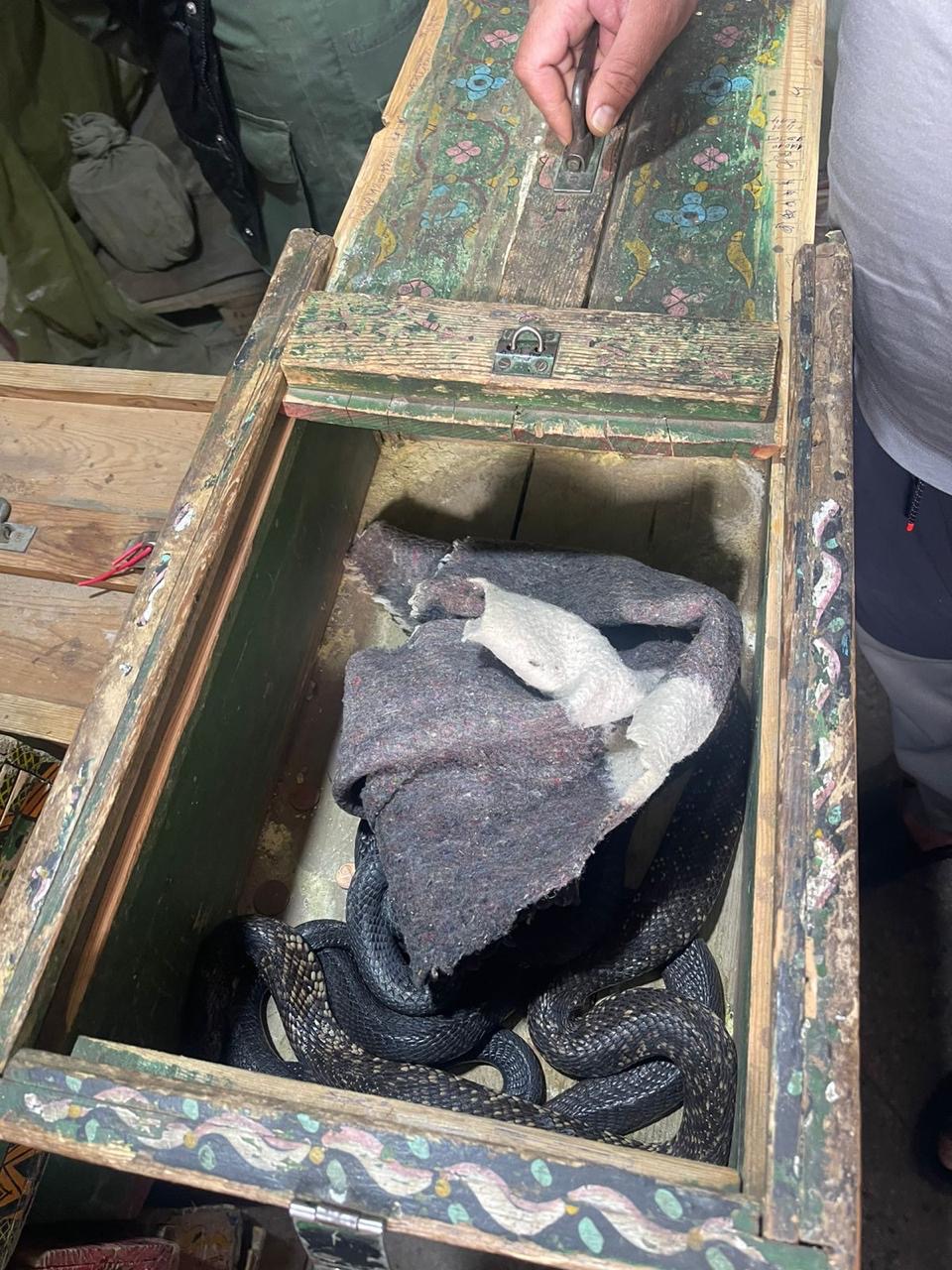 أما العملية الأمنية الثانية فقد تم تنفيذها بمدينة مراكش، ومكنت من ضبط أحد الأشخاص وبحوزته 61 من الأفاعي في ظروف تهدد سلامة الأشخاص، من بينها 13 أفعى من نوع كوبرا و36 أفعى من نوع كلوفر وفئات أخرى من الزواحف مختلفة الأحجام.