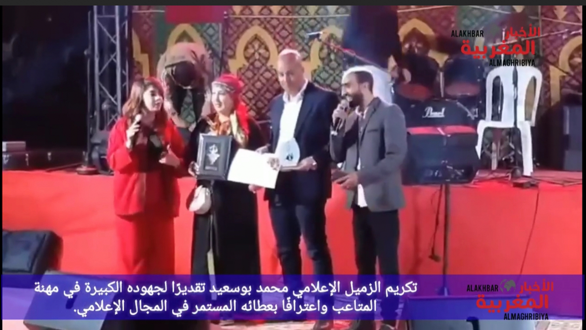 التكريم قيمة إنسانية نبيلة وفكر حضاري لا يصدر إلا من نفس كريمة وهمة عالية، وهو من أسعد اللحظات التي يعيشها الإنسان لما يحمله من أسمى معاني الوفاء والامتنان. وفي هذا الإطار، كان للزميل الإعلامي محمد بوسعيد موعد مع تكريم يليق بمسيرته المهنية الحافلة، خلال مهرجان تدارت أنزا بمناسبة الاحتفال بالسنة الأمازيغية.