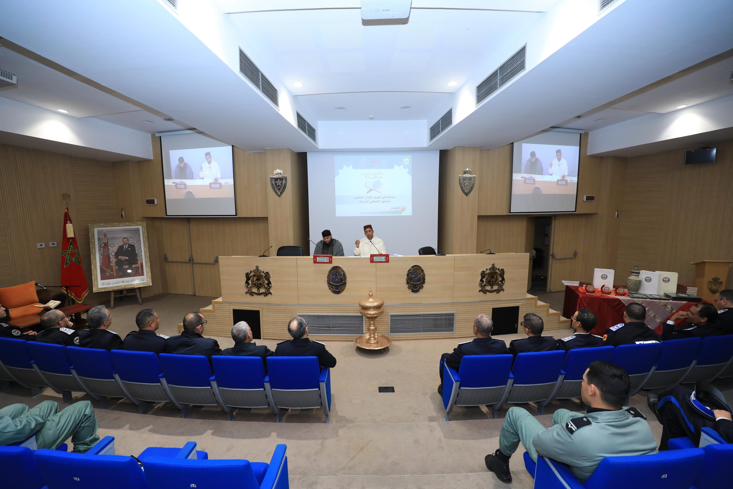 في إطار البرنامج الثقافـي لشهر رمضان الحالي، نظم المعهد الملكي للشرطة، يومه الاثنين 24 مارس 2025، مسابقة في تجويد القرآن الكريم لفائدة موظفات وموظفي الشرطة العاملين والمتدربين بالمعهد الملكي للشرطة بالقنيطرة ومختلف مدارس التكوين الشرطي التابعة له، وذلك بإشراف وتنسيق مع المندوبية الإقليمية للشؤون الاسلامية بمدينة القنيطرة.
