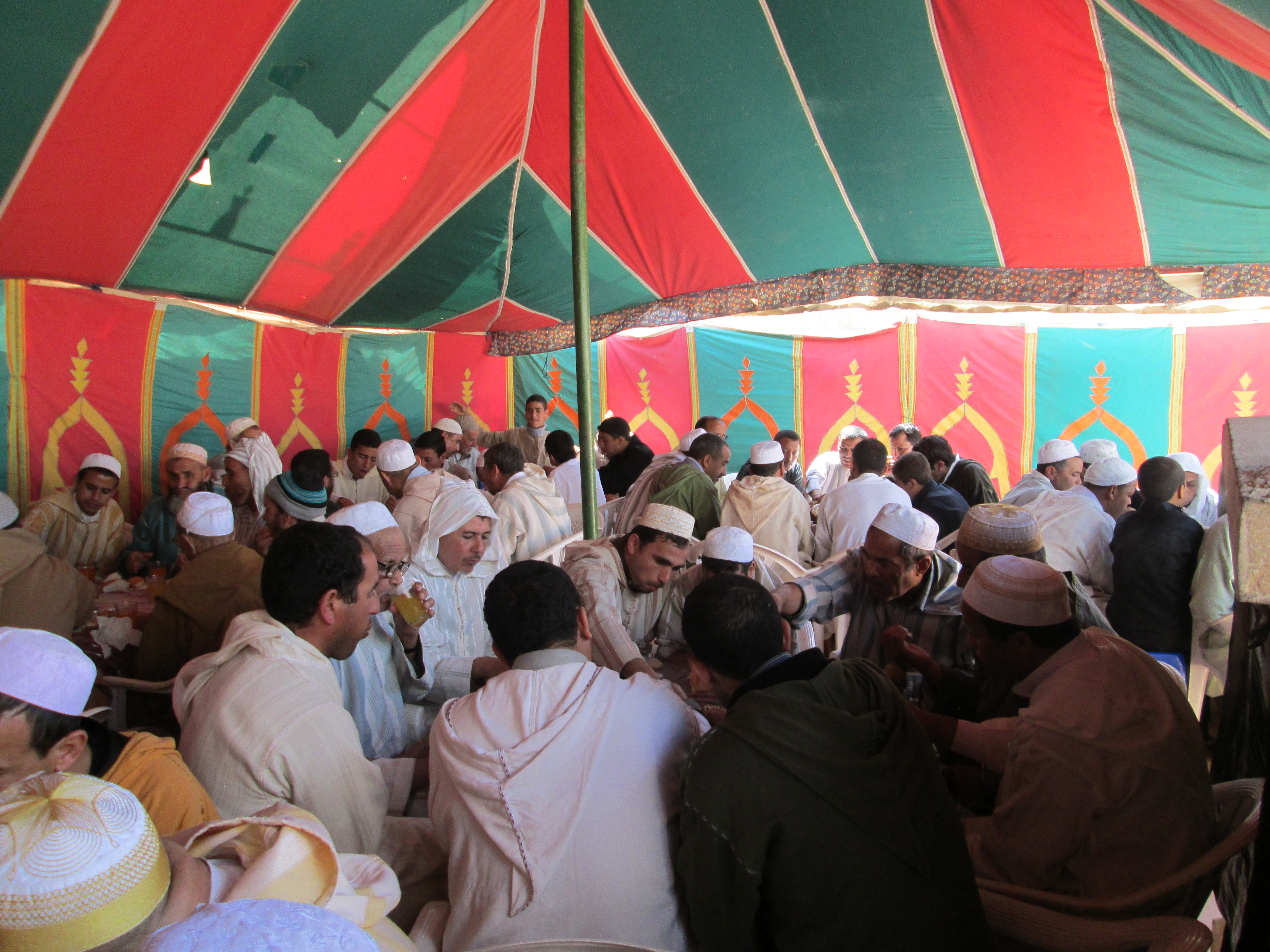 في حفل ديني رهيب ، وبحضور فقهاء وطلبة حاملي العلم ، وفي مجمع كبير بمنزل ” عائلة الحرشاوي ” بدوار تكاديرت نعبادو التابعة لجماعة الدراركة اكادير، حطت قافلة الفقهاء رحالها في المحطة الثانية بهذا الدوار ، والتي تسمى عند الامازيغ “ادوال ” ، الفقهاء ينتمون لمدرسة اغلان سيدي يحيا الكائنة بقبيلة مسكينة ، بحيث تقوم المجموعة بزيارة لكل الدواوير التابعة لجماعة الدراركة ، من اجل جمع الهبات والتبرعات لفائدة المدرسة العتيقة اغلان سيدي يحيا ، والتي يتم بها النفقة على رواد المدرسة من طلبة العلم وفقهاء طيلة السنة الكاملة ، وخلالها يقومون بتنظيم ليالي دينية بمسجد كل دوار ، بحضور كافة الساكنة وتدبح الدبائح وتوزع على على الكوانين لترسل اطباقا من الكسكس الفوار بالليل الى المسجد الذي جمع ساكنة الدوار وفقهاء ادوال ، كل طبق مهيأ ومحضر حسب المستوى المعيشي لكل عائلة .