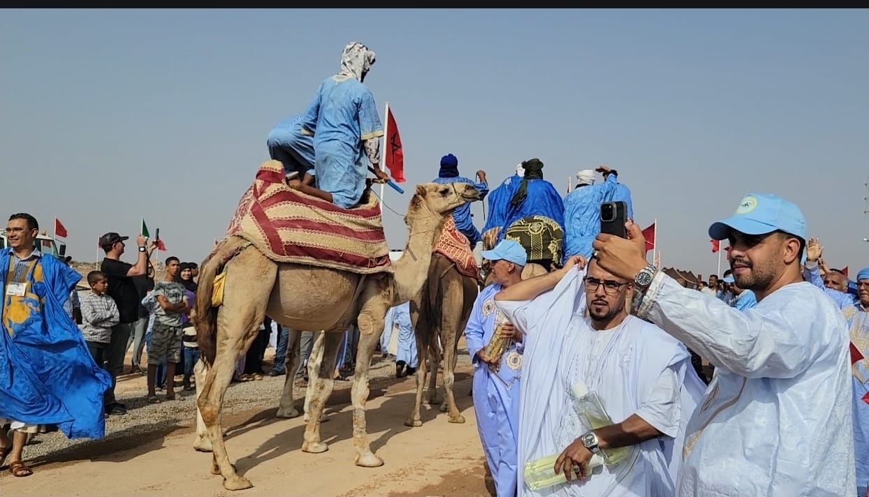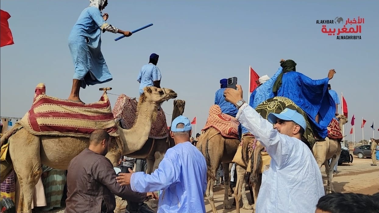 وكانت “الهجّانة الحسانية” وسربات الخيل والجمال من أبرز فقرات هذا اليوم الأول، حيث زينت المكان بلوحات فنية تقليدية نادرة، أعادت إلى الأذهان صور التنقل القَبَلي، ومظاهر العيش الصحراوي في أبهى تجلياته، ما منح الحدث طابعًا بصريًا مثيرًا، وخاطب الحواس قبل الوجدان.