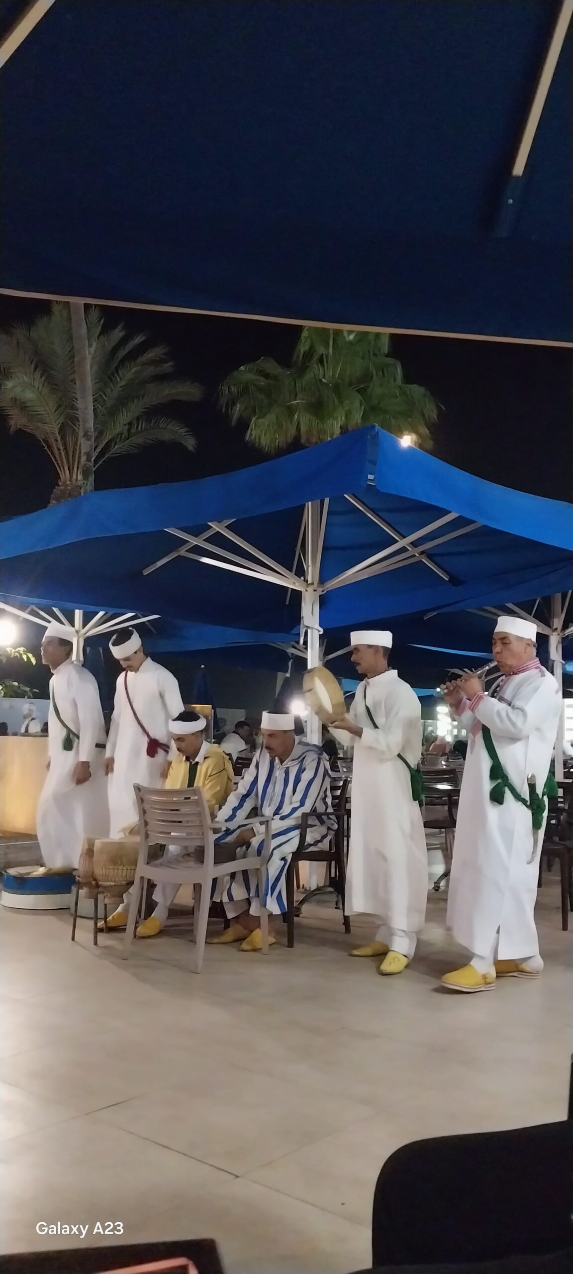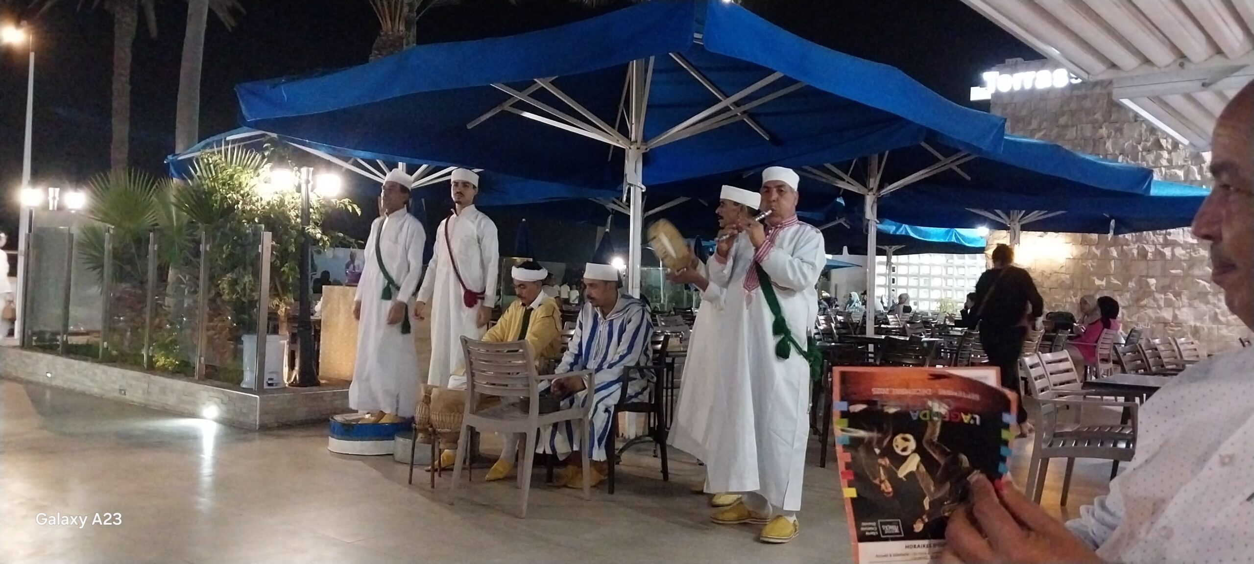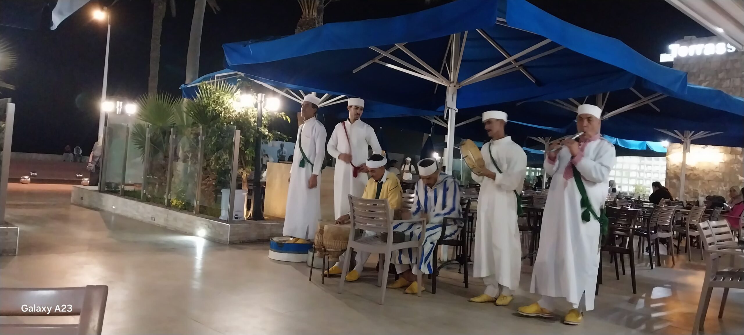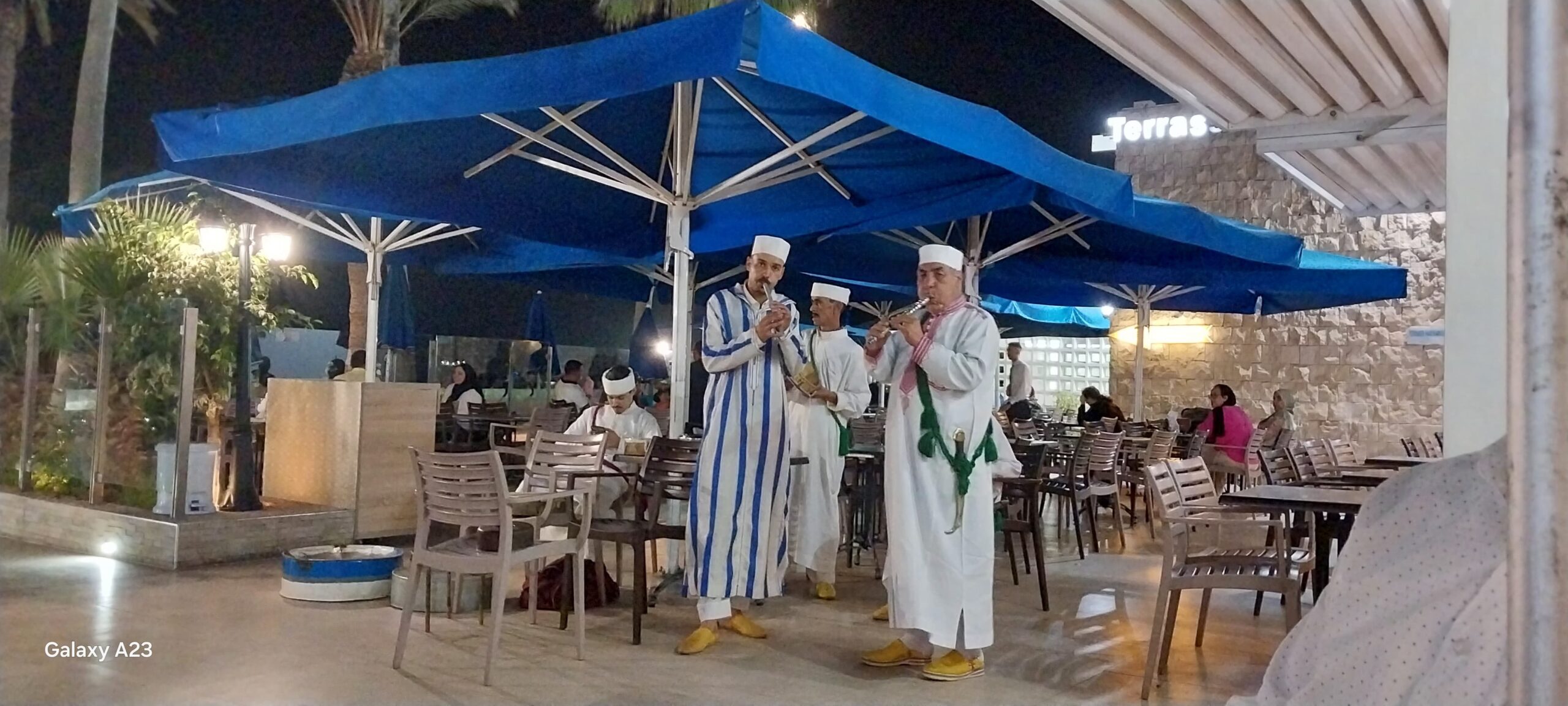 هذا وقد عرف المطعم حلة جديدة استحسنها رواده ،بتنظيم وصلات فلكلورية ببهو المطعم ،في لحظة حميمية عائلية ،والتي كانت في مستوى يليق بقيمنا وسلوكنا الحضاري الأصيل ،فاستمتع المرتفقين بألوان من الفنون الأمازيغية و الشعبية ،فكان هذا الطبق الفني التراثي الغنائي ،مناسبة للأسر و العائلات التي جاءت لتناول وجبة العشاء أو احتساء فنجان من القهوة ،للاستمتاع بالطبق الفني بشكل مباشر .مما جعل الحضور التفاعل والانسجام مع الايقاعات و الرقصات الشعبية ,