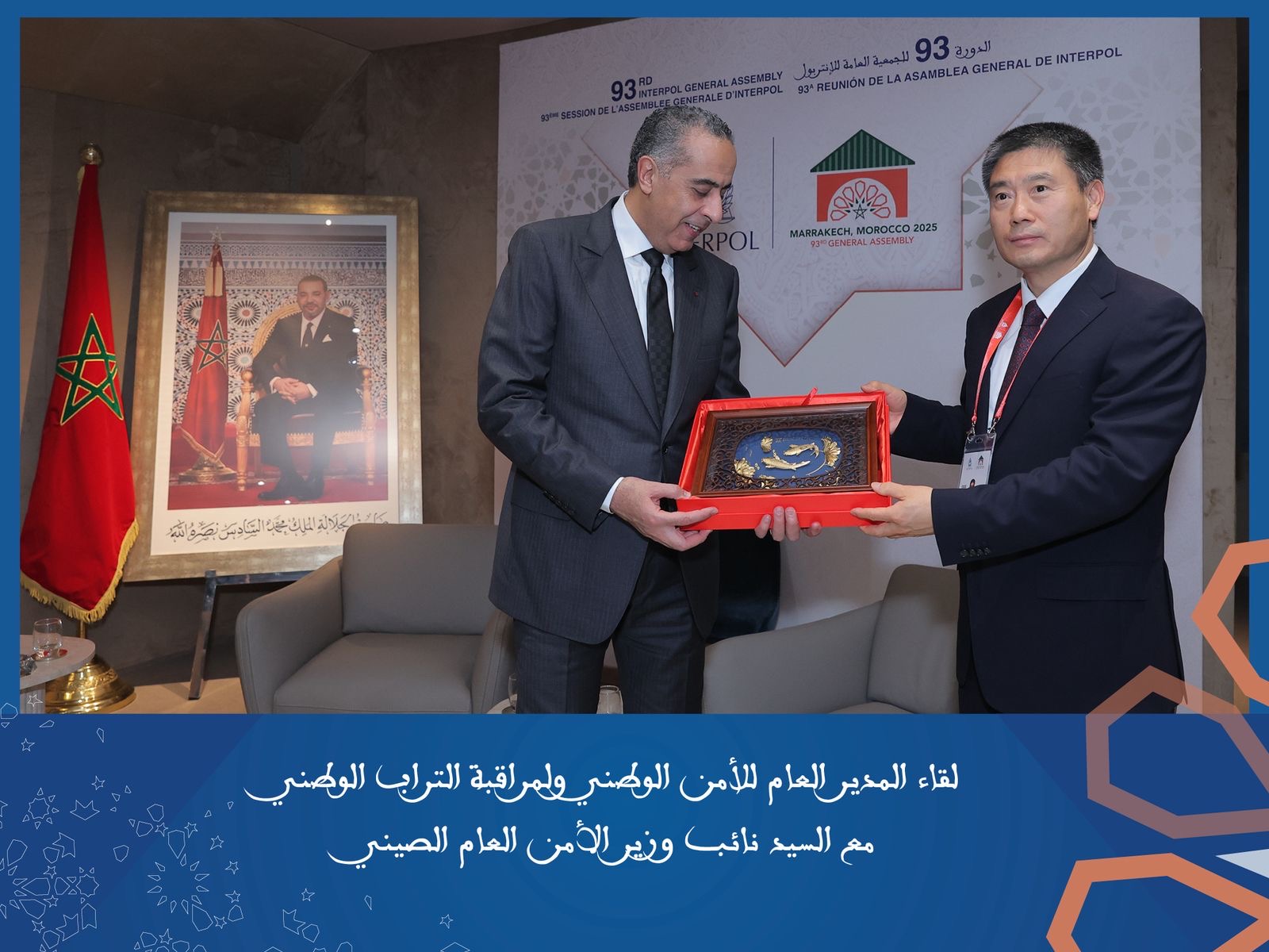 علاوة على اللقاءات والمباحثات التي أجراها المدير العام للأمن الوطني ولمراقبة التراب الوطني مع رئيس منظمة الأنتربول وأمينها العام وأعضاء لجنتها التنفيذية، قام أيضا بإجراء لقاءات ثنائية مع ممثلي بعض المنظمات الدولية والإقليمية التي تشارك في أشغال الجمعية العامة للأنتربول، وذلك في إطار المساعي المبذولة لتعزيز التعاون الأمني المتعدد الأطراف مع المنظمات والمنتديات ذات الصلة بالعمل الأمني وعمليات حفظ السلام.