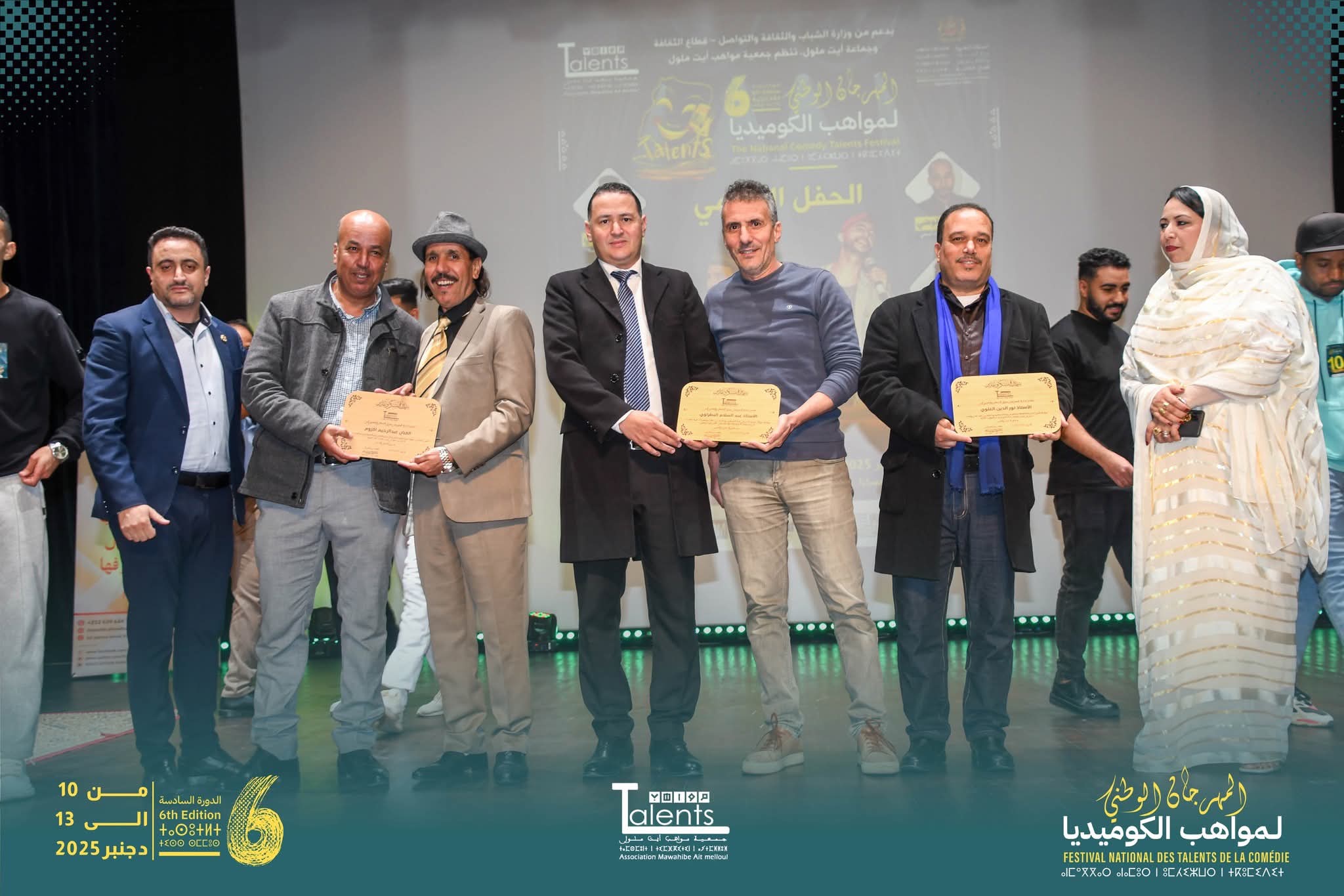 أطفأ المهرجان الوطني لمواهب الكوميديا شمعته السادسة بالمركب الثقافي بأيت ملول يوم السبت 13 دجنبر الجاري ،المنظم على مدى ثلاثة أيام من قبل جمعية مواهب ،بتتويج الكوميدي سعيد البودامي ،من مدينة سلا ،بالرتبة الأولى ،متبوعا بسهيل غزالي ،ممثل الدار البيضاء ،ليحل ثالثا ابن مدينة طاطا ،الحسين باري .