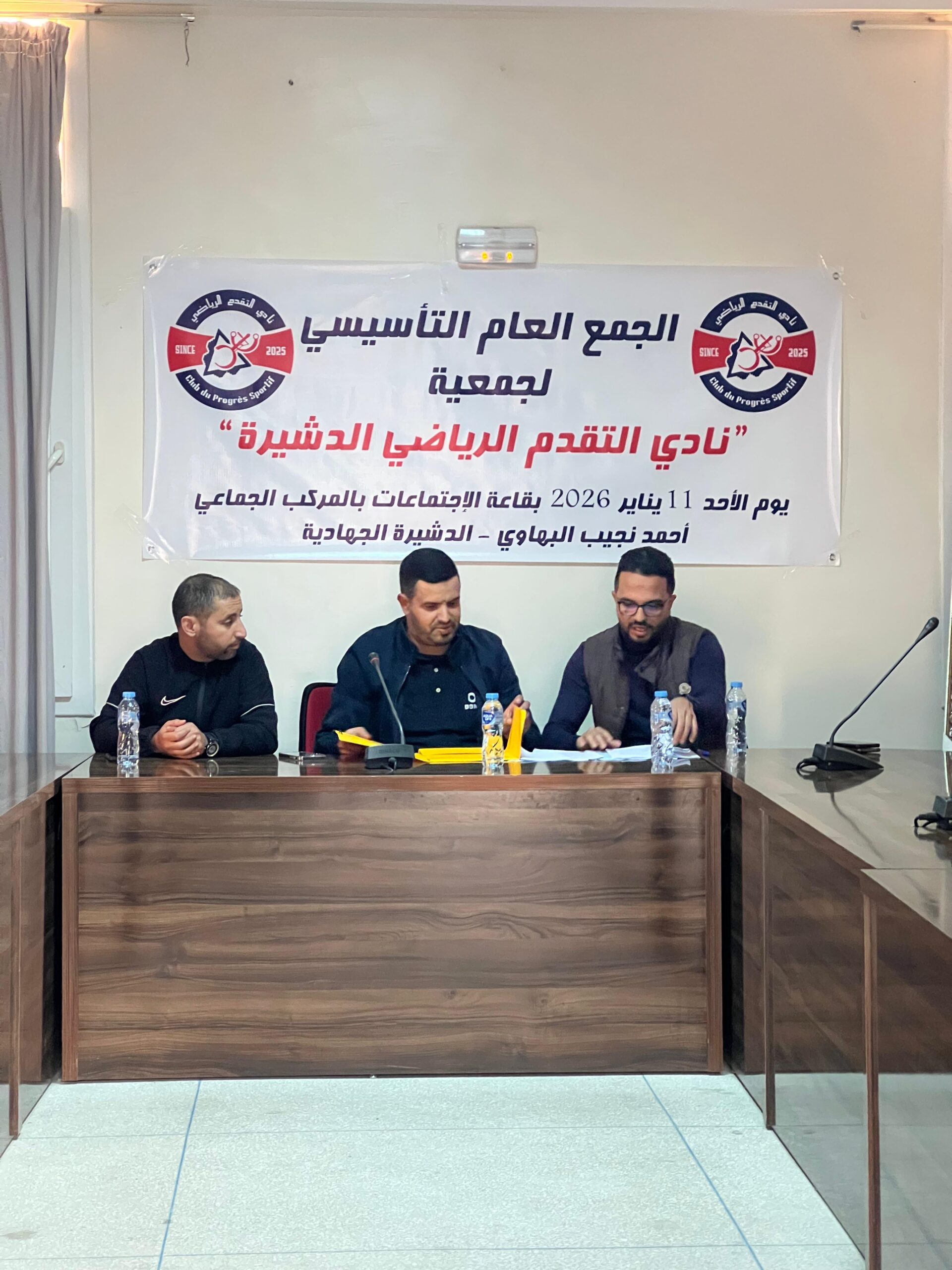 عقدت جمعية نادي التقدم الرياضي الدشيرة، مساء يوم الأحد 11 يناير 2026، جمعها العام التأسيسي بقاعة الاجتماعات بالمركب الجماعي أحمد نجيب البهاوي بمدينة الدشيرة الجهادية، وذلك تحت إشراف اللجنة التحضيرية، وبحضور ممثل السلطة المحلية.