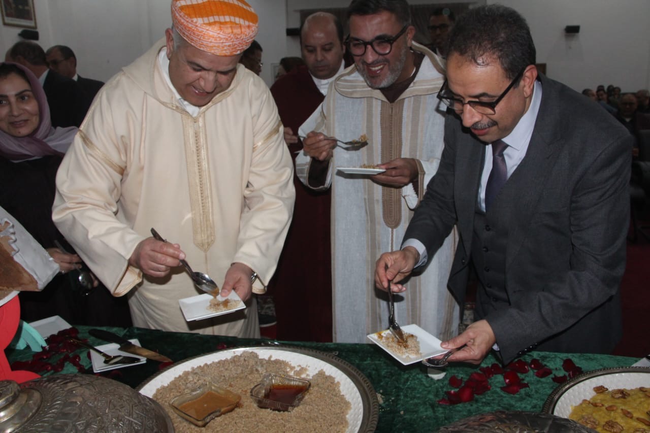 و مستخدمي عمالة إنزكان أيت ملول ،حيث احتفلوا بالسنة الأمازيغية الجديدة 2976 داخل قاعة الاجتماعات بحضور محمد الزهر ،عامل عمالة إنزكان أيت ملول ،لما لهذه المناسبة من دلالات تاريخية وهوياتية ،ترمز إلى التجذر التاريخي والحضاري للإنسان والثقافة الأمازيغية .