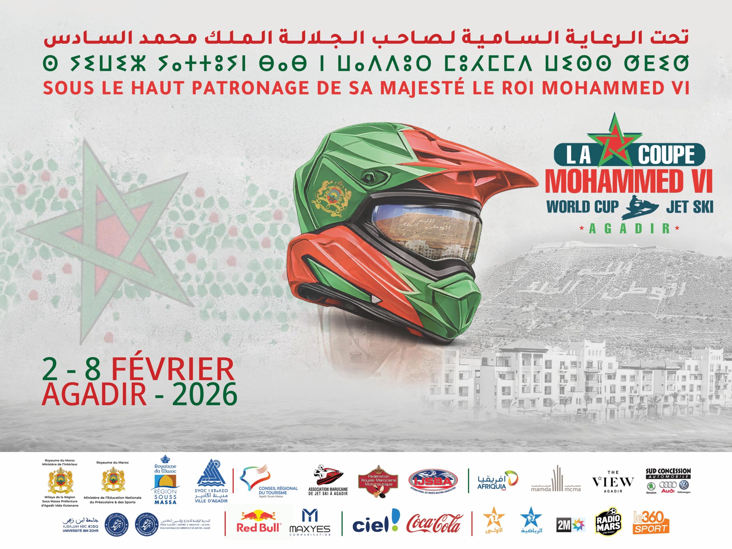 تحت الرعاية السامية لصاحب الجلالة الملك محمد السادس حفظه الله ، تنظم الجمعية المغربية للجيت سكي بأكادير تحت لواء الجامعة الملكية المغربية للمحركات النارية المائية بشراكة مع الاتحاد الدولي للعبة كأس محمد السادس للجيت سكي بأكادير في الفترة الممتدة من 2 إلى 8 فبراير 2026 بشاطئ أكادير ، وهي مرحلة أولية قبل إنطلاق بطولة العالم ،وستدرج انطلاقا من السنة القادمة ضمن سباقات بطولة العالم Word Séries. كأس محمد السادس للجيت سكي بأكادير لهذه السنة تعرف مشاركة أبرز المتسابقين المغاربة والاجانب خاصة من دول بولونيا ، إستونيا، إمارة موناكو ،بلجيكا ،اليابان،إنجلترا ،جزر السيشل ،فرنسا والإمارات العربية المتحدة ،وينتظر أن تعرف منافسة قوية بين مختلف المشاركين على مستوى الاصناف الستة للتظاهرة الدولية التي سيشرف على فعاليتها طاقم تحكيم بطولة العالم للجيت سكي ومعه الإدارة التقنية الوطنية التابعة للجامعة الملكية المغربية للمحركات النارية المائية.