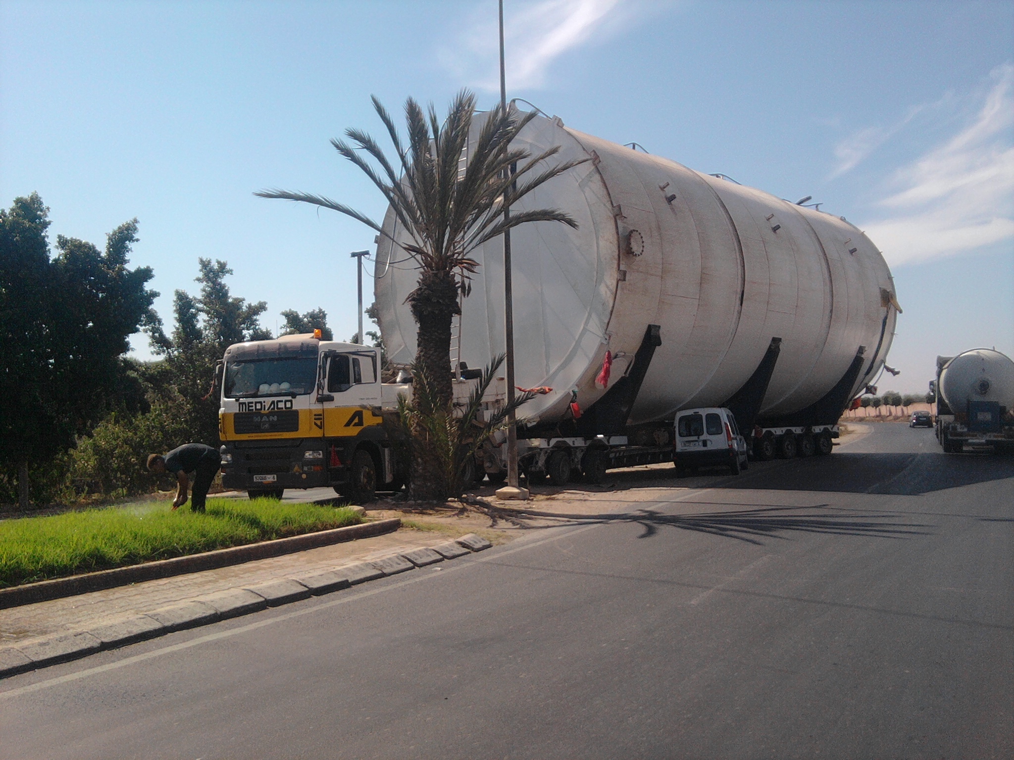 وصل صهريج ضخم محمول على شاحنة كبيرة منطقة سميمو بالصويرة في اتجاه اكادير ، وهو عبارة عن مجسم حديدي كبير ، يبلغ طول العربة الناقلة له حوالي 30متر وعرضها 10 على ناقلة لها 34 عجلة كبيرة الحجم ، يشبه تماما الصهريج السابق ( انظر الصورة) الذي مر مند شهور قليلة قادما من المحمدية في اتجاه موريطانيا ، حيث دامت رحلته اياما كثيرة ليصل الى وجهته بموريتانيا، وقد عرف مرور الشاحنة الاولى التي تحمل الصهريج عرقلة في السير ، وانقطاع الطريق لفترات ، كما تجهزت لمروره اجهزة متنوعة من امن وطني والدرك وتقنيين من وزارة التجهيز والمكتب الوطني للكهرباء ، من اجل تسهيل المرور وسحب الحواجز التي قد تسبب في سير الشاحنة والتي وصل بامن وامان.