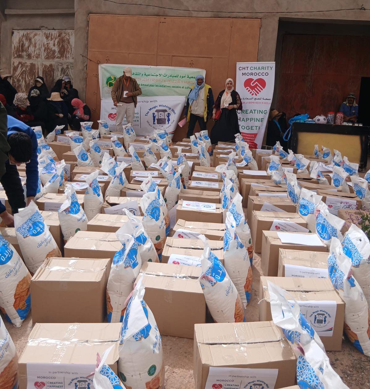 إيمانا منهم في نشر قيم التضامن و التآزر بمساعدة الأسر التي تعيش العوز والفقر في المناطق النائية ،،بادرت كل من جمعية أمود للمبادرات الاجتماعية و الثقافية ونظيرتها لنصنع السعادة معا ،بشراكة مع المنظمة البريطانيا “دي ماجيك “،على توزيع المواد الغذائية بدوواير جماعة والقاضي بإقليم تارودانت ،حيث استفاد من هذه العملية الإنسانية النبيلة ،ما يزيد عن 120 أسرة .،في أفق توسيع العملية مستقبلا لتشمل باقي المناطق الأخرى