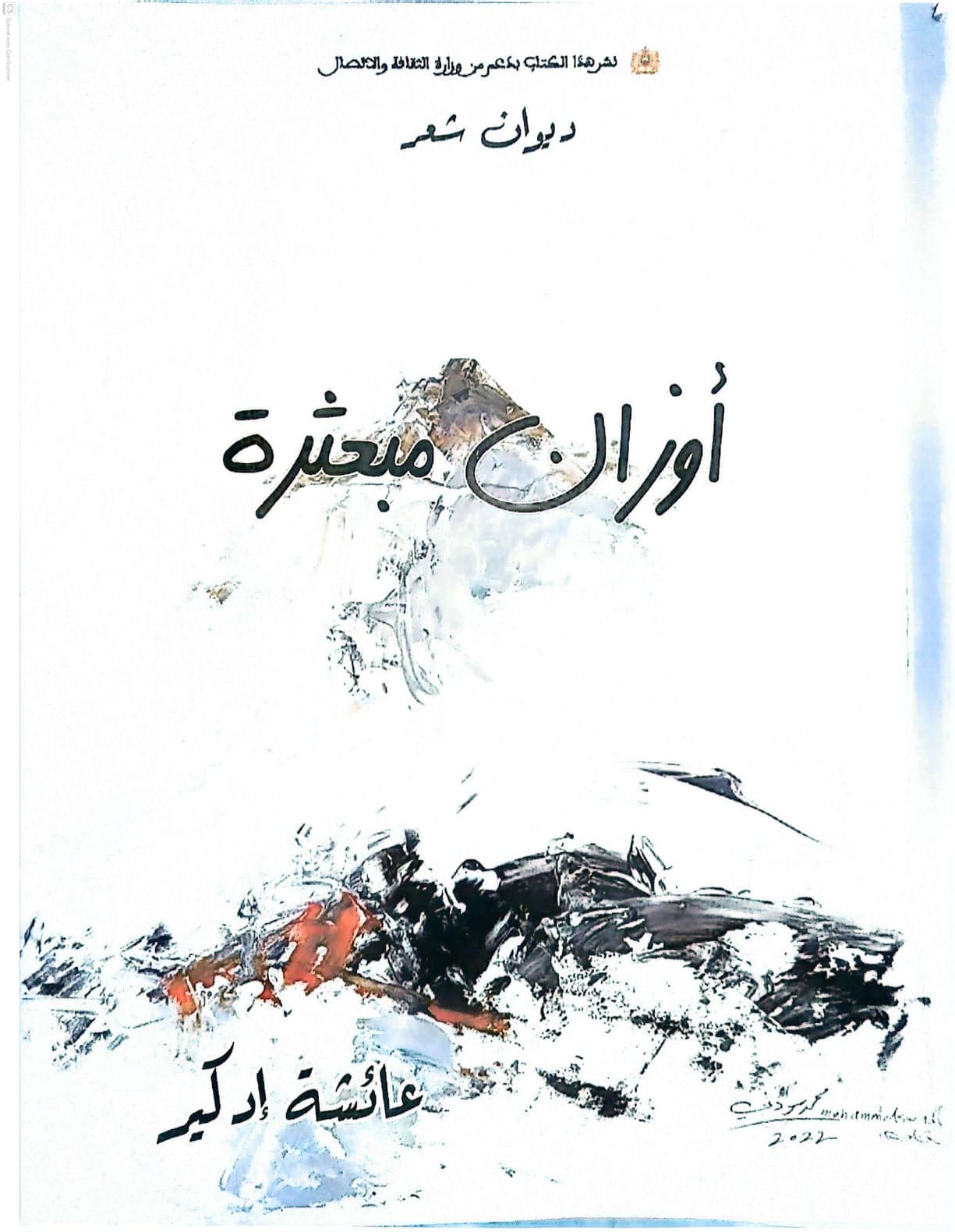 أصدرت الشاعرة عائشة إدكير ديوانا شعريا جديدا اختارت له عنوانا “اوزان مبعثرة “،والذي يبحر بالقارئ إلى عوالم المكابدة اليومية للإنسان ومدى تشبثه بإصرار على البقاء رغم أثرية الحضاري واللحاق بركب تأصيل كل صور الوعي الفني ,لتسافر به من خلال هذه الباكورة الأدبية ،إلى التمسك بوطنه والنفح عنه واعتناق أهواءه ومعانقة هموم الاقراب والخلان ،فكان ذلك بقالب إبداعي متماسك ورزين ،ينتصر لقضية النثر ونصاعة الصورة الشعرية وطرافة الاستعارة .حيث سعت إلى تجويد القول الفني ،مما جعل نصها الشعري يلوح بالتدفق و التوهج والاختلاف ، لتظهر ممكنات الذات وحرقتها ،وتستحضر قوافيها إنكسار الصورة مستلهمة النصوص من الذات والزمن و السياقات الاجتماعية والسياسية و والإنسانية بوعي رفيع ،حيث حاورت من خلاله اشكالا من التعبير الفني وجدت تطويع اللغة برحاية بالغة الدلالة لتبدو إيحاءات الاهداء من عناوين النصوص .