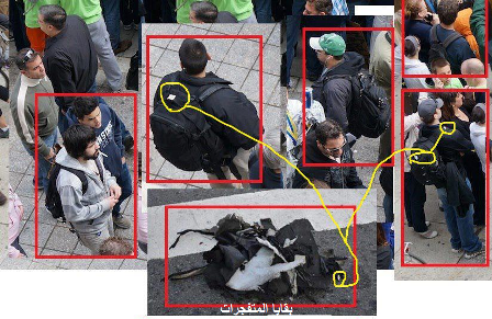 و قالت تقارير ان “السلطات تملك صورة لمشتبه به يحمل وربما اسقط عمدا حقيبة سوداء على مقربة من موقع الانفجار الثاني”. وبعد يومين من تفجيري بوسطن (ماساشوسيتس، شمال شرق) بدا مكتب التحقيقات الفدرالي يكون فكرة دقيقة الى حد ما عن العناصر التي استخدمت في صنع العبوتين الناسفتين الا انه مازال يتوخي الحذر الشديد بشان هوية ودوافع صانع او صانعي هذه العبوات القاتلة. ونشر المحققون الاربعاء صورا لقطع معدنية لاناء ضغط استخدم في هذا الاعتداء الذي اسفر عن مقتل ثلاثة اشخاص واصابة 180 وروع الولايات المتحدة.